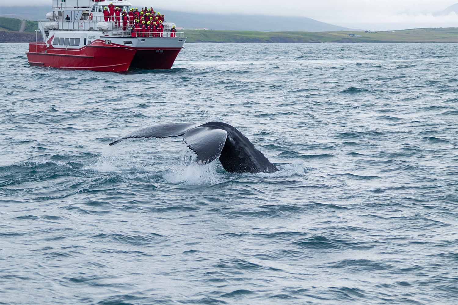 Among popular whale watching locations is Akureyri, the second largest town in Iceland and the capital of the North. With a population of more than 18,000 citizens, the town is only 100 kilometers (62 miles) away from the Arctic Circle. It's also situated in the longest fjord in Iceland, Eyjafjörður. Because of this convenient location, many choose Akureyri as the place most suitable for whale watching.