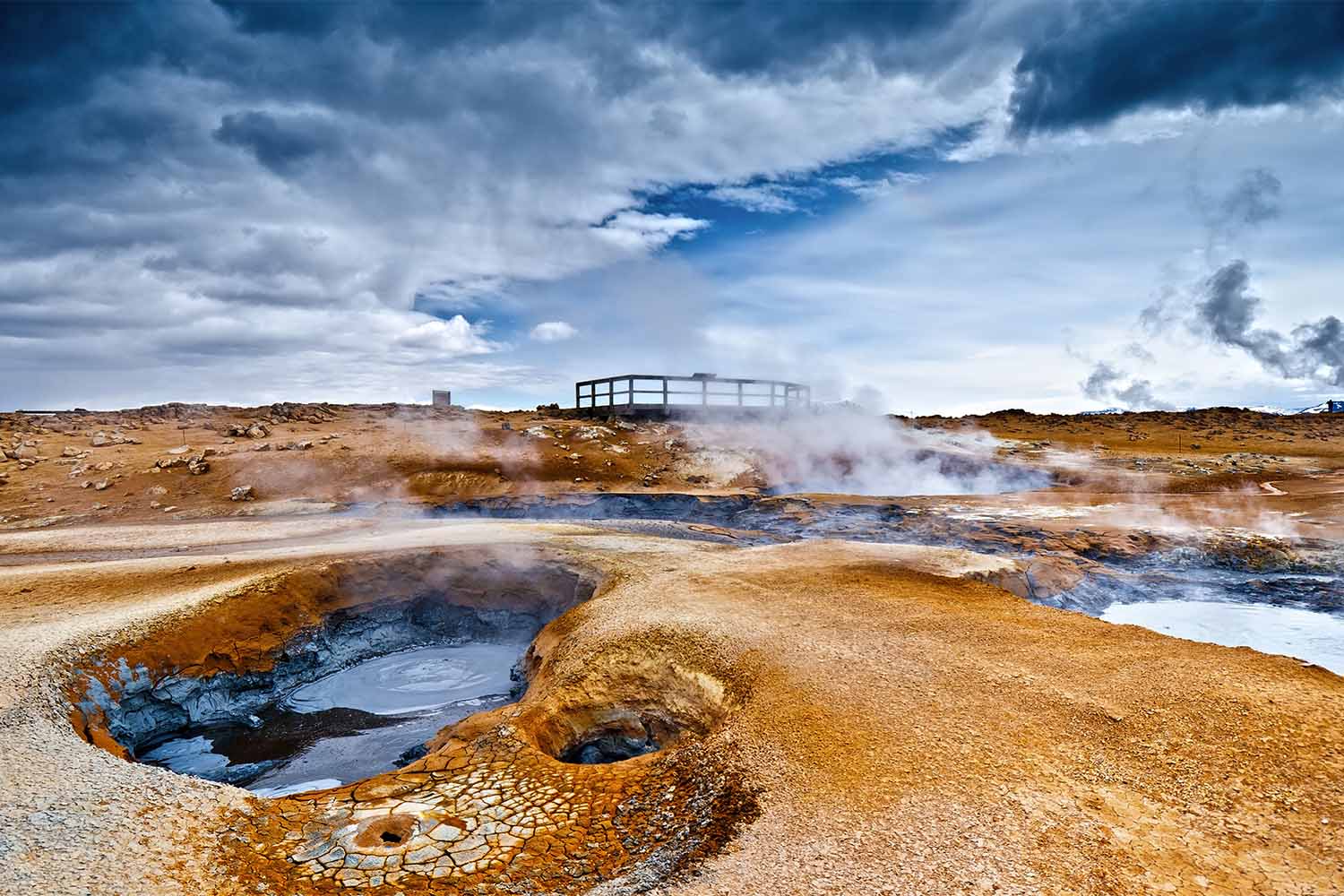 Namaskard's hot springs full of steams and geothermal activity in Iceland