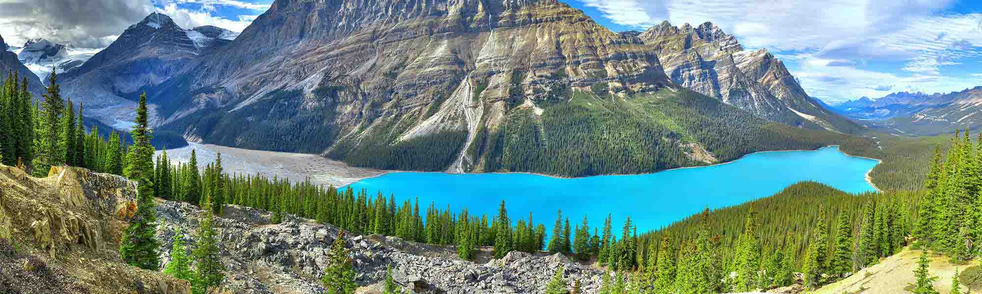 Peyto Lake is in Banff National Park in the Canadian Rockies, near the Icefields Parkway.