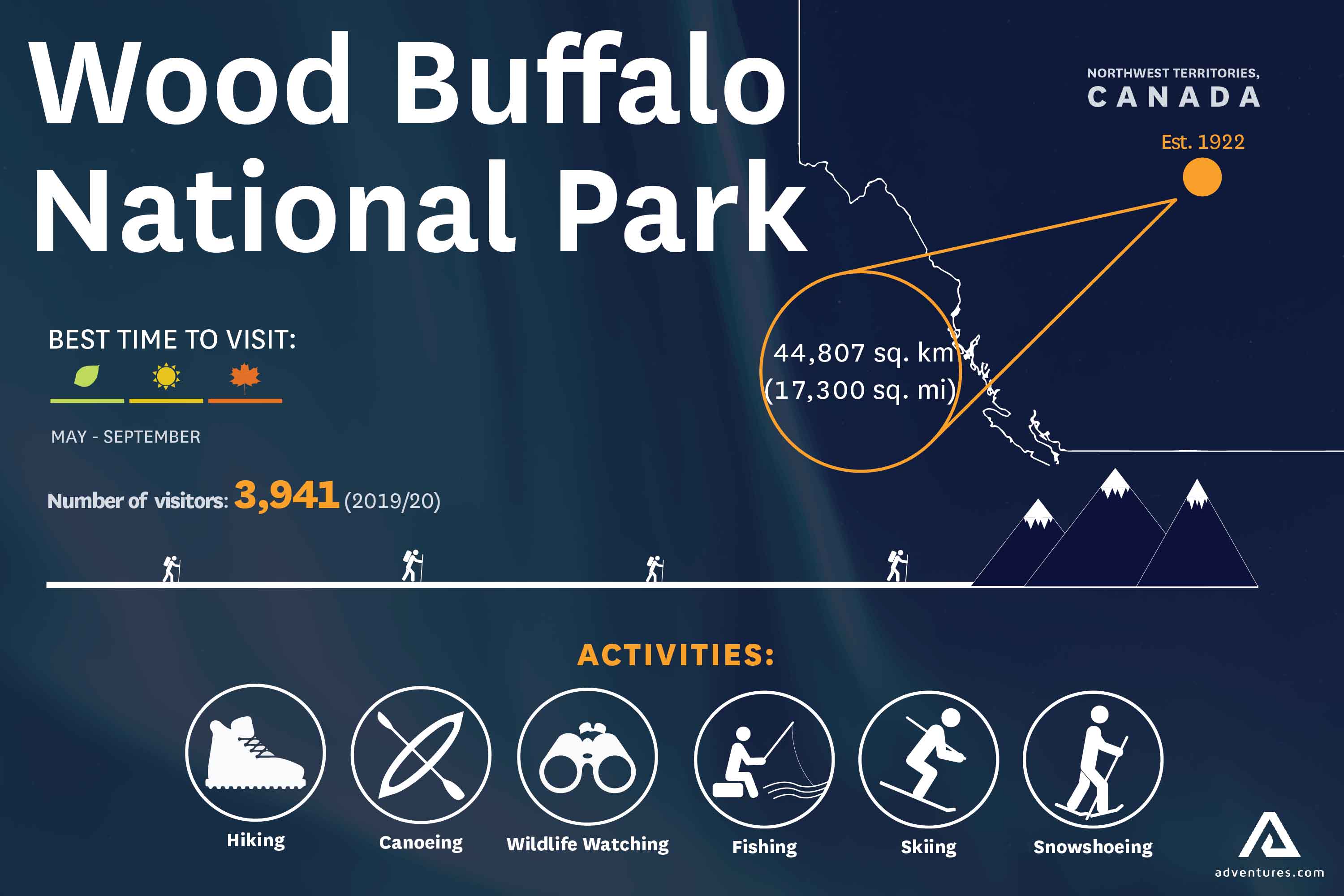 Wood Buffalo National Park is also open in winter. January and February are best times to see aurora borealis. Temperatures during the winter can range from -13°F to -22°F.