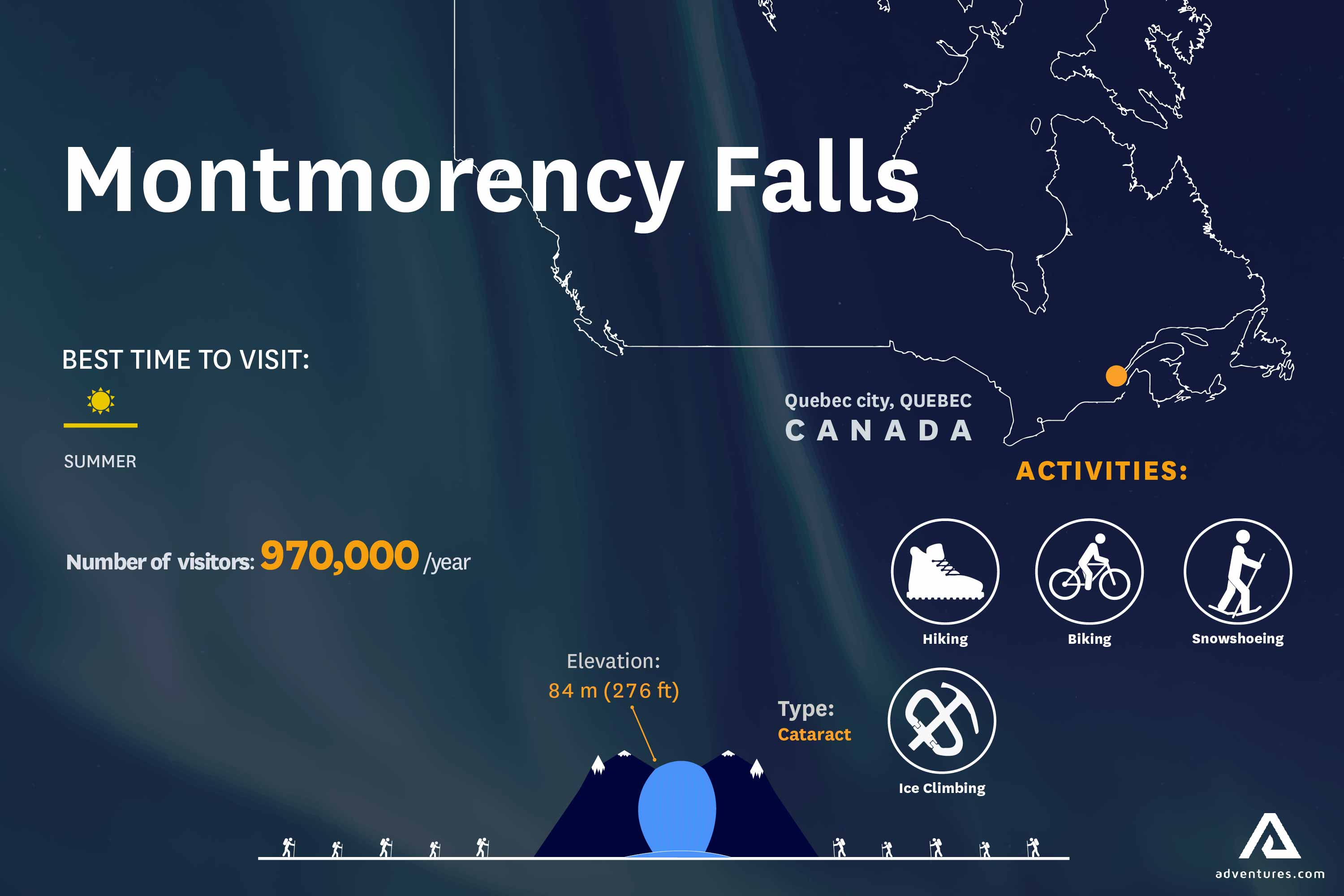 Montmorency Falls Park offers a variety of activities for the whole family. Biking paths, hiking trails, playgrounds for children, and a nearly 1000-foot-long zipline over the falls are popular summer attractions. In winter, snowshoeing and ice climbing are among the most popular activities.