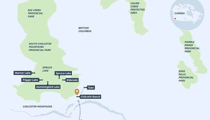 Traverse mid-elevation grasslands and discover endless verdant forests. Gaze at imposing peaks, rising high above the surrounding area. The sweeping views of the South Chilcotin Mountains will leave you breathless.