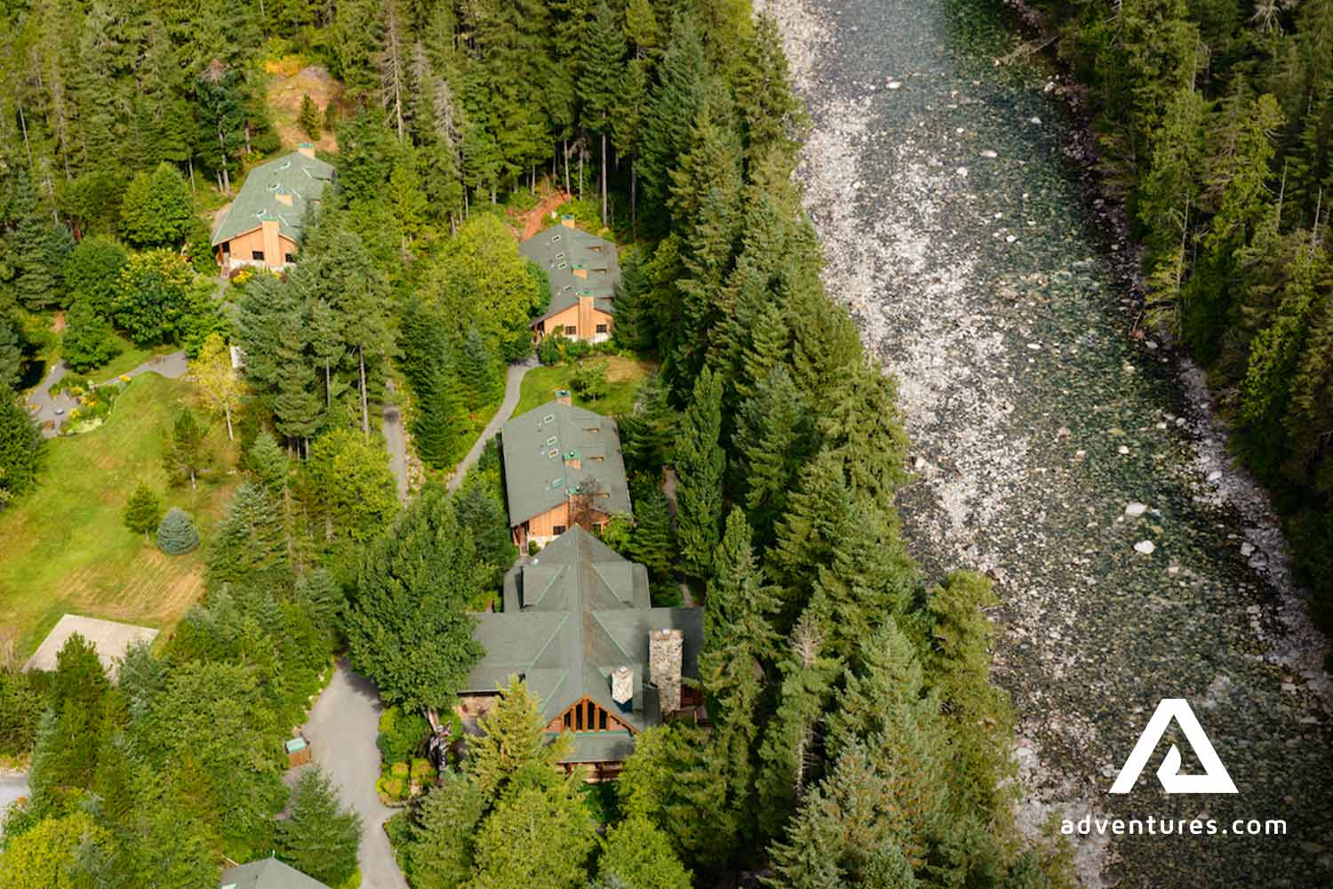 The main log lodge is simply spectacular, crafted from British Columbian Spruce and Pine, nestled on nearly 1,200 feet of riverfront on the Gold River, and easily speaks to those who know the meaning of roughing it in luxury.