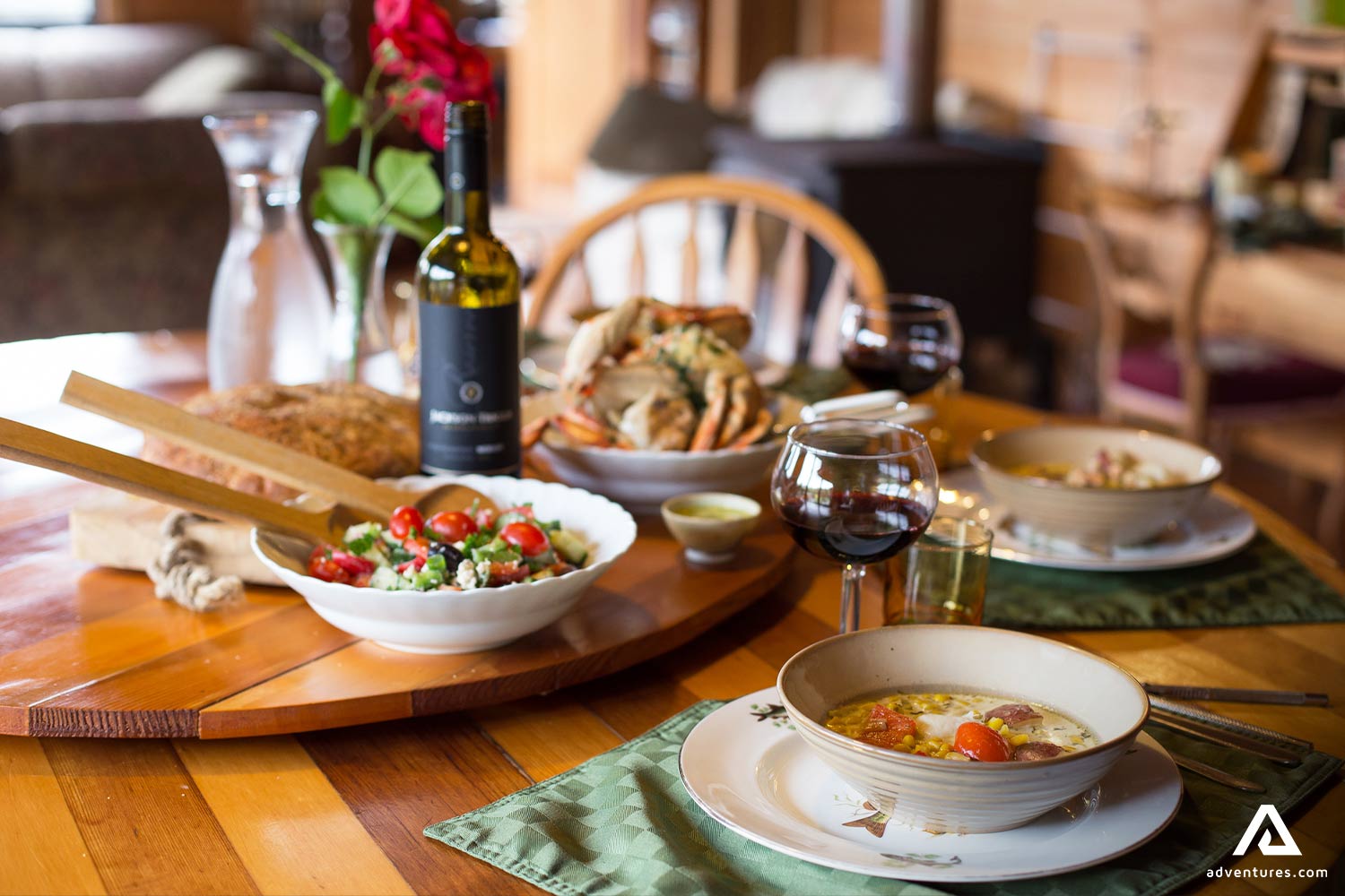 Local BC wine is served with dinner, fresh baked goods, and coffee or tea are always available. Meals are served family-style, and local seafood delicacies such as fresh crab, prawns, salmon, or halibut may be on the menu. You will feel right at home here!