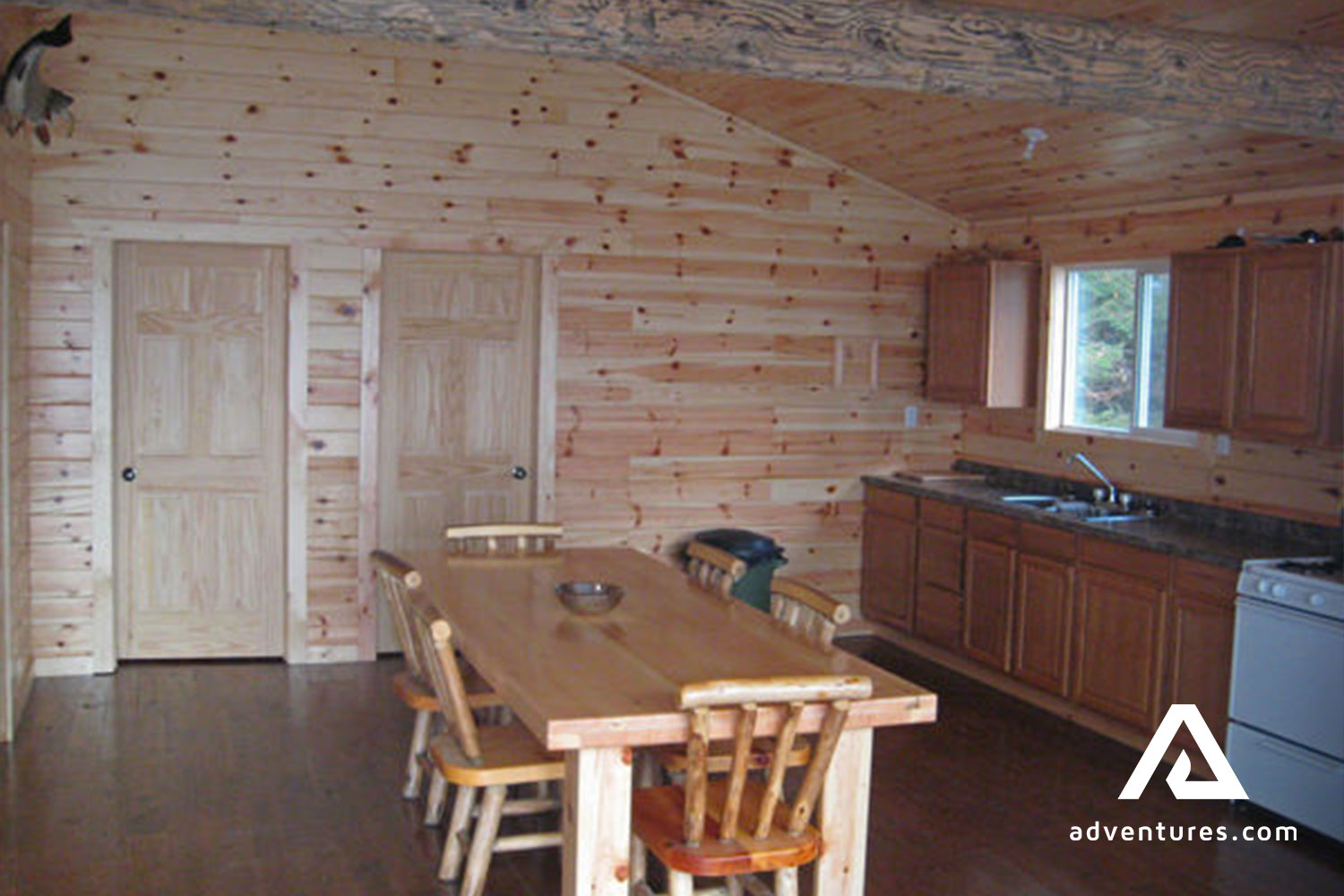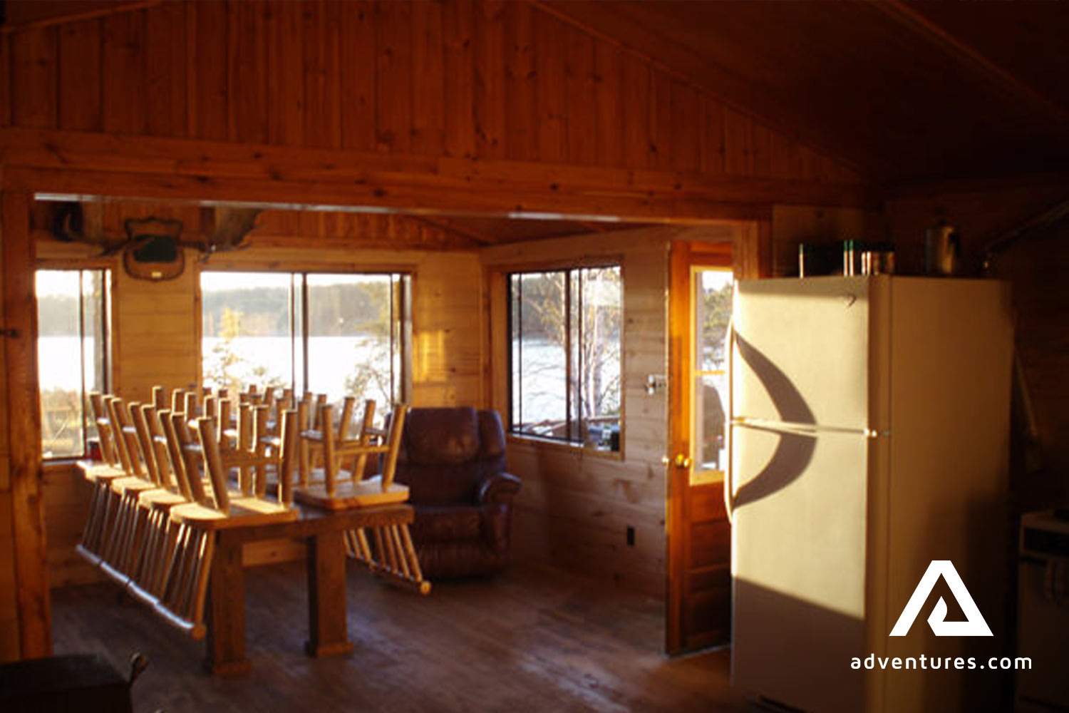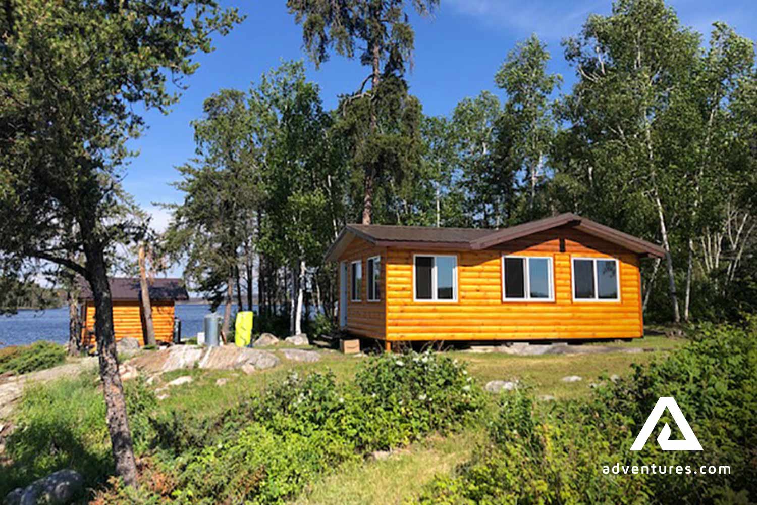This is the only outpost cabin on the lake. This 3-bedroom, 8-person cabin is located on an island in the center of the lake. Inside, you will find hot and cold running water, a private shower and bathroom sink, a full kitchen with pots, pans, utensils, and dishes, one large refrigerator-freezer unit, a chest freezer and a gas stove. Outside, a propane barbecue and fish cooker are supplied. This cabin is equipped with solar lights and a wood stove for heat.