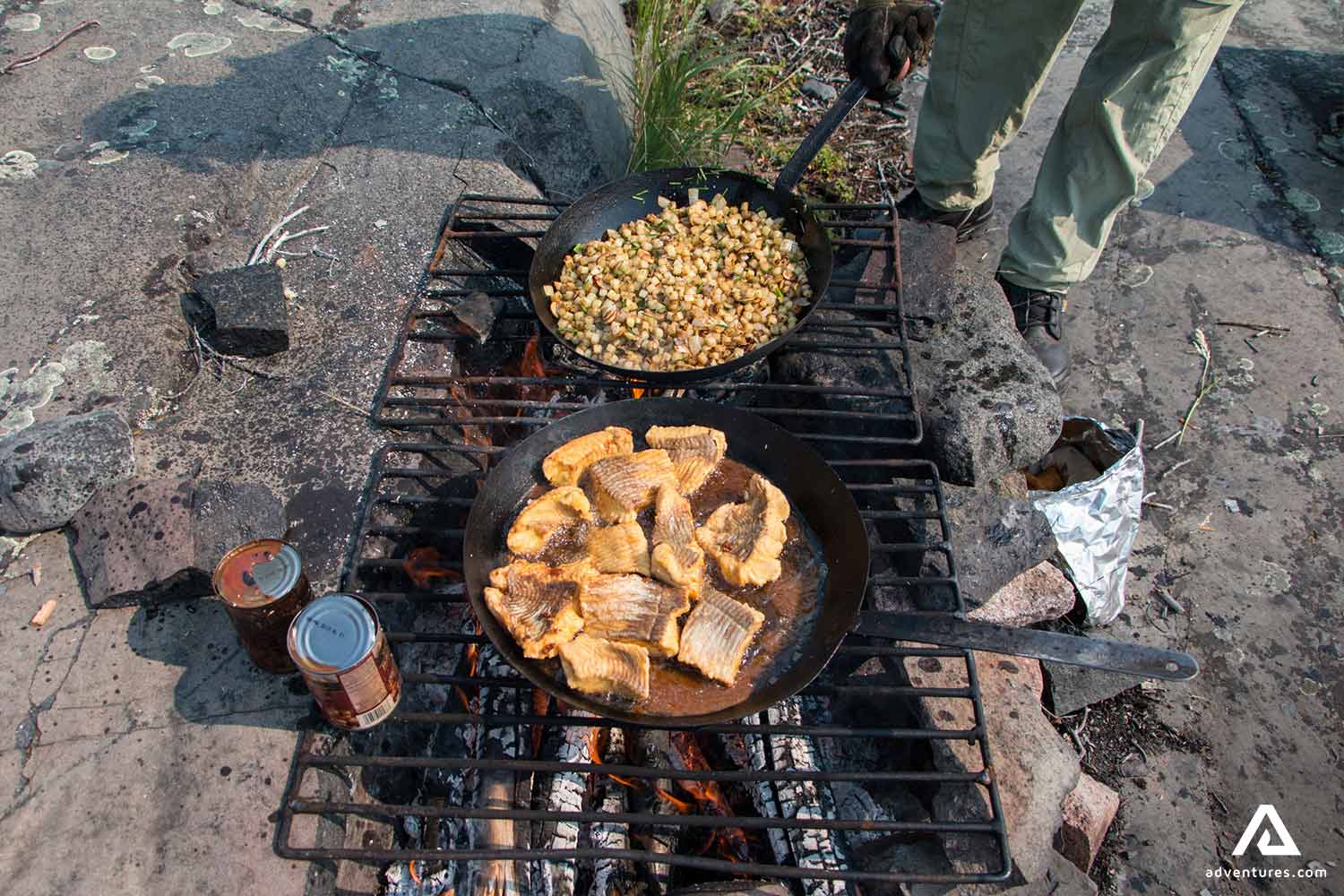 Three meals per day are prepared in the dining area or as shore lunches. They are renowned for their fantastic meals. Visitors from all over the world tell say it is as good as anything offered in many fine restaurants. They even fly in fresh fruit and vegetables.
