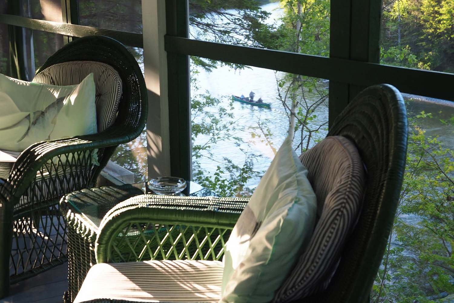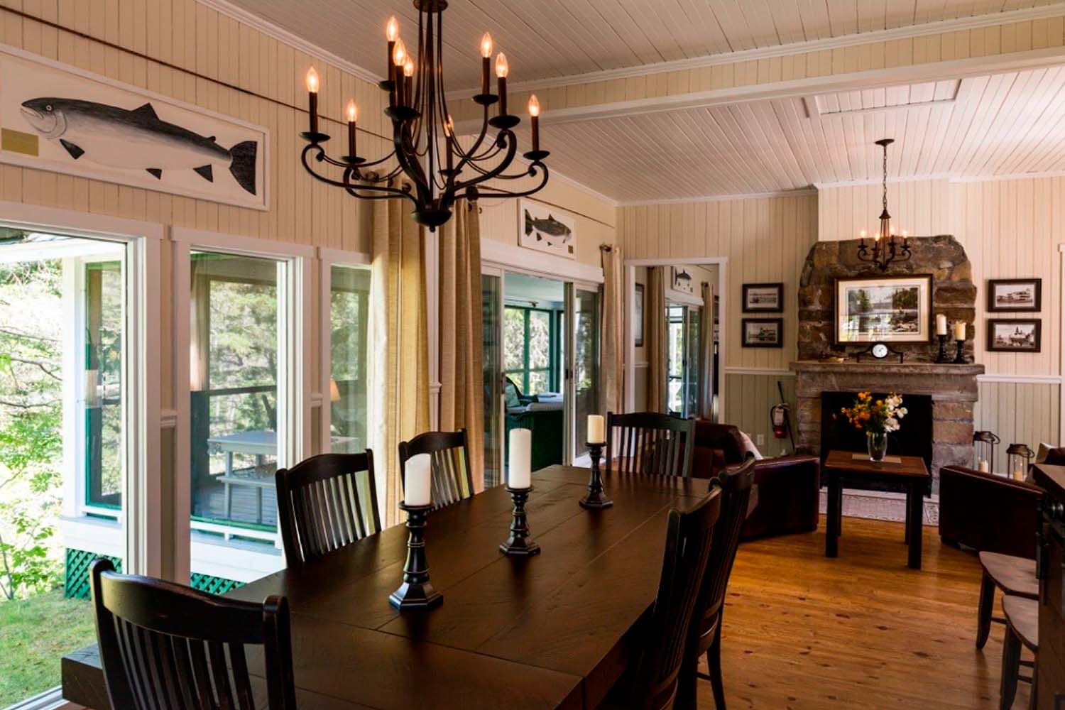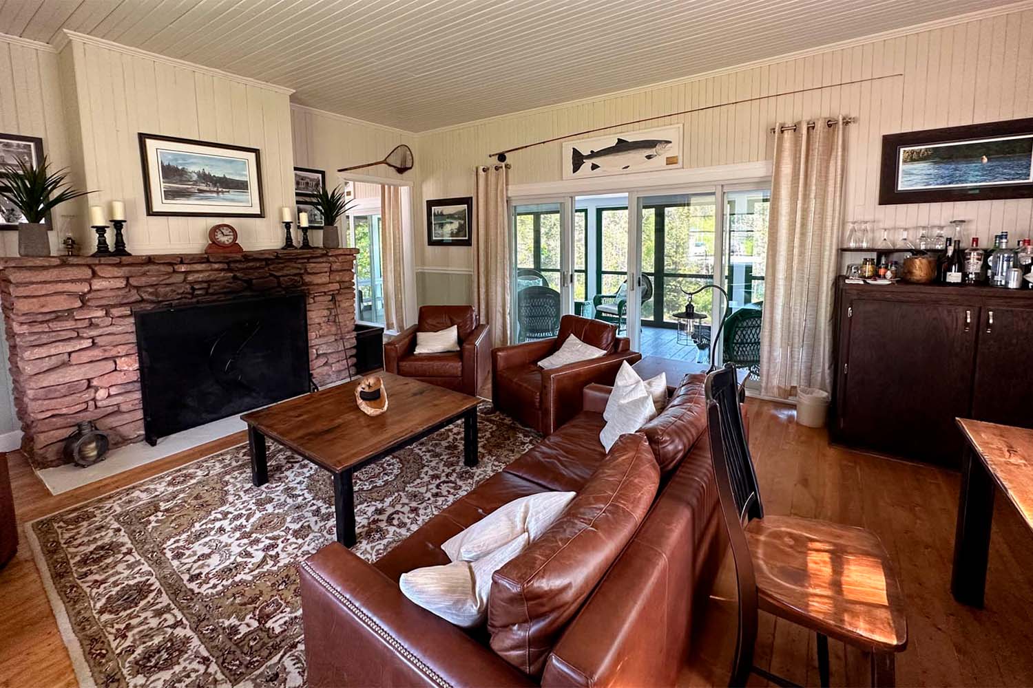 The dining room with its original stone fireplace, creates a relaxing atmosphere to enjoy all your meals. The living room, surrounded by angling memorabilia and fine art, is where fishing stories are meant to be told at the end of the day. Guests are invited to take in the breathtaking views and immerse themselves in the tranquil and beautiful surroundings of the Bonaventure River.