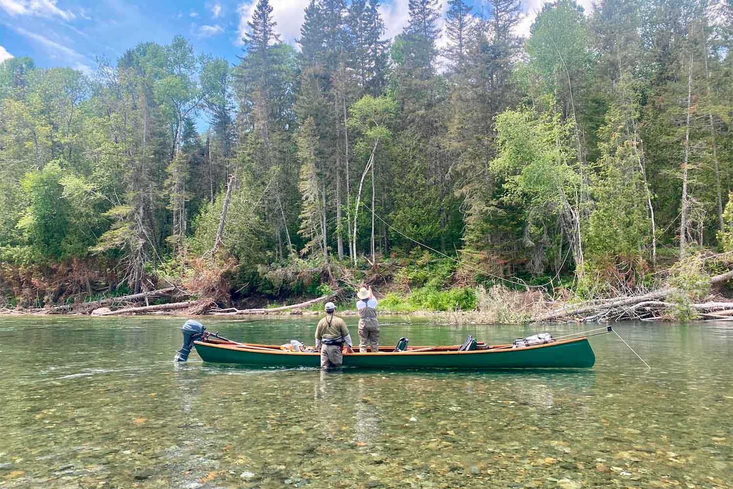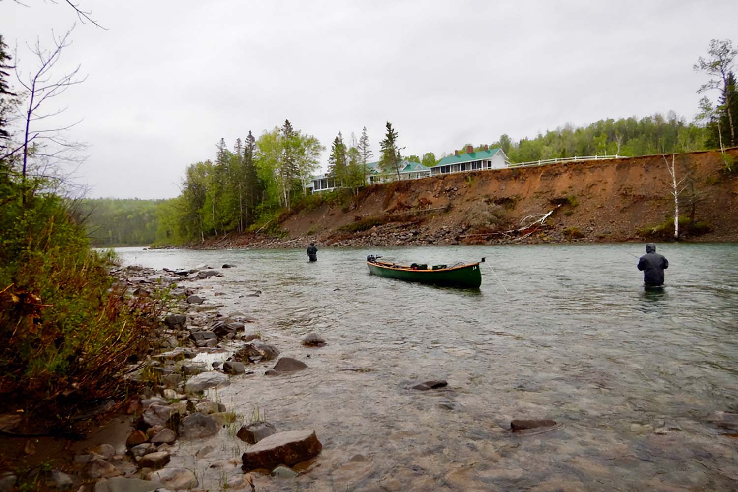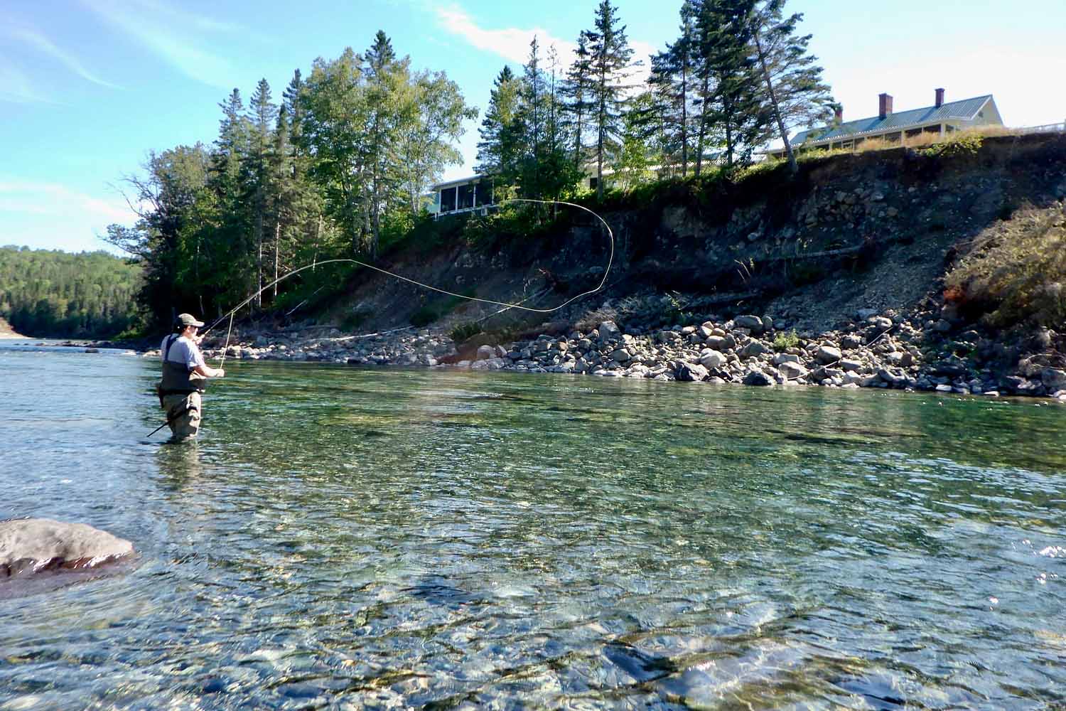 The lodge offers guests a split-day fishing experience with a return for an in-house lunch. During the month of June, anglers will fish a combination of casting from traditional 26-foot river canoes and wading. July and August present anglers with the opportunity to wade fish during the action-packed dry fly season. September is an exciting month due to seasonal changes on the river, so anglers can expect both wade and canoe fishing depending on water levels. The Bonaventure River is legendary for its water clarity and offers its anglers a captivating sight-casting experience.
