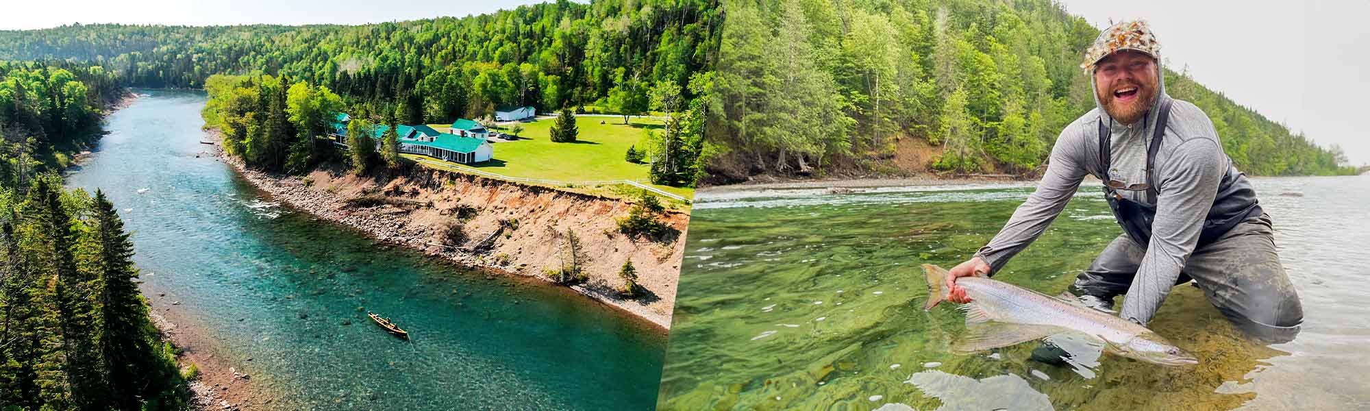 This exceptional lodge overlooks the crystal-clear fishing pools on the Bonaventure River. Guests have exclusive rights to miles of private waters where you can perfect your fly-fishing skills to catch amazing Atlantic Salmon.