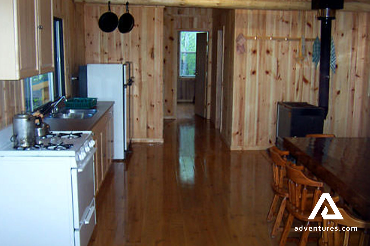 We are the only outpost cabin on the lake. This 2-bedroom, 8-person cabin is located on a peninsula on the North Shore. Inside, you will find hot and cold running water, a private shower and bathroom sink, a full kitchen with pots, pans, utensils, and dishes, one large refrigerator-freezer unit and a gas stove. Outside, a propane barbecue and fish cooker are supplied. This cabin is equipped with solar lights and a wood stove for heat.