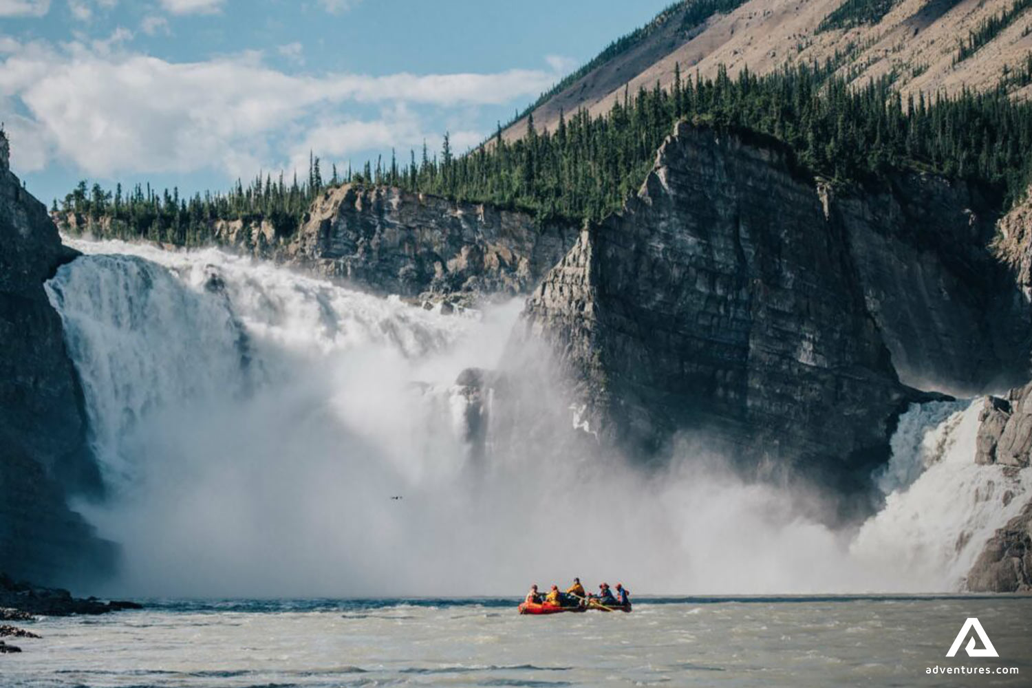 The tour starts at one of the largest tufa mounds in the country and takes you past the Virginia Falls, where the Nahanni River falls 300 ft (92 m) into a spectacular canyon below. It continues through majestic valleys, all the way down to the native village of Nahanni Butte.