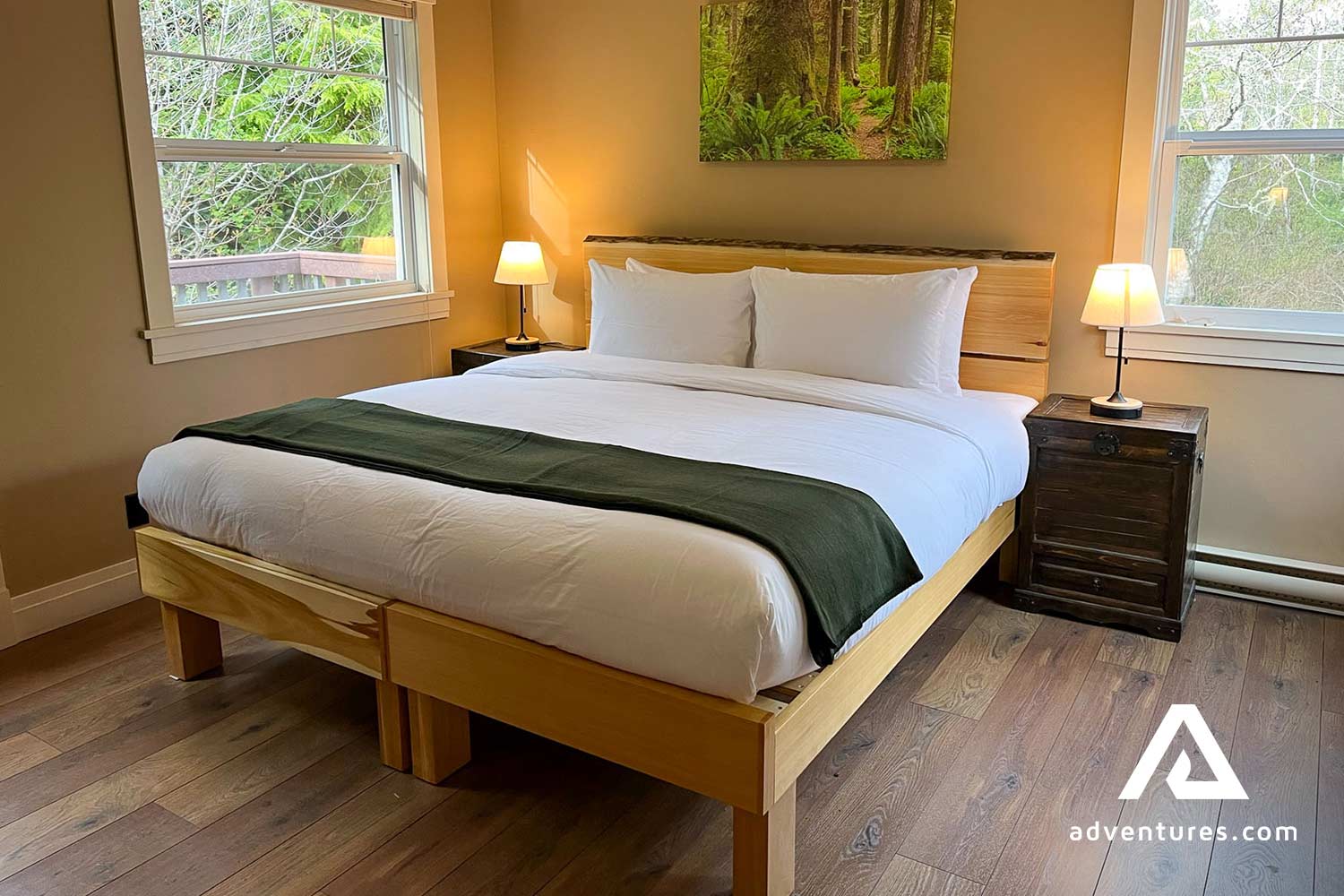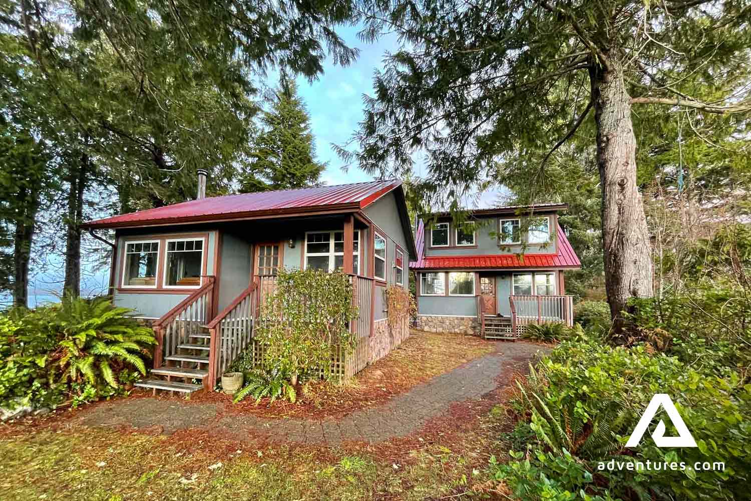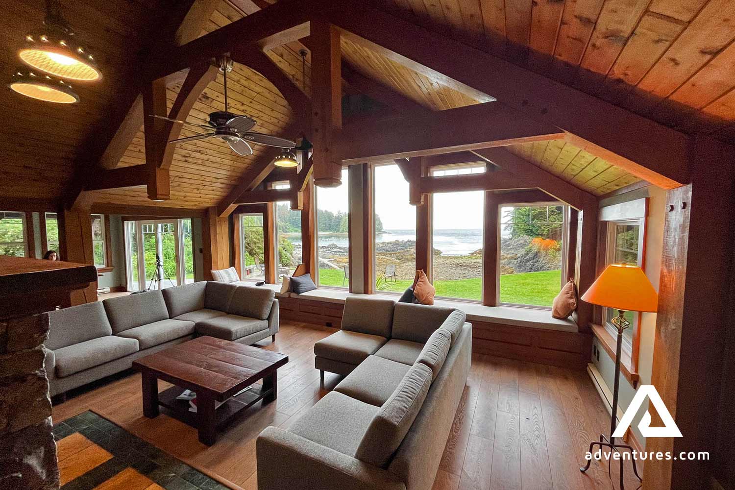 The lodge prides itself in providing a high-standard natural and cultural history experience combined with expertly guided activities including hiking, kayaking, and snorkeling. You can plan your stay for 3, 4, or 5 nights. The lodge is located in one of the former Huu-ay-aht villages called ʔuc̓uuʔa (pronounced “ootsuu-a”). This location is known for its astonishing views of the ocean.