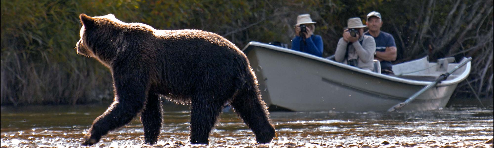 These grizzly bear viewing trips, recognized by the Canadian Tourism Commission as a 'Signature Experience' that showcases authentic, immersive and engaging tourism experiences for travelers, are in the autumn, from mid-August to the middle of October. This is when the local rivers are host to teeming numbers of returning salmon which in turn draws lots of grizzlies hoping to fatten up for the coming winter. At this time of the year, the grizzly bears are intent on fishing and are more tolerant of both other bears and people and are therefore much easier to observe.