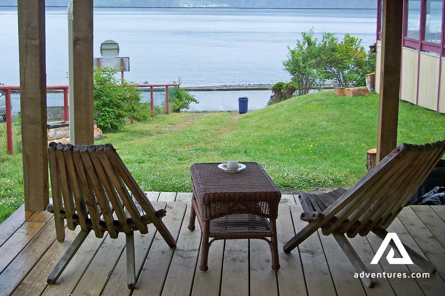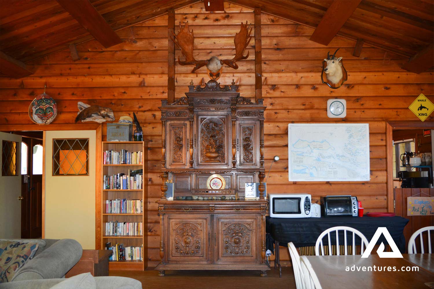 The log lodge opens up a stunning view of mountains, breathtaking sunsets, and local marine wildlife, even overlooking Johnstone Strait. Those who wish to share their impressions of the day are welcome to the common room, where many guests like to meet, dine, and talk.