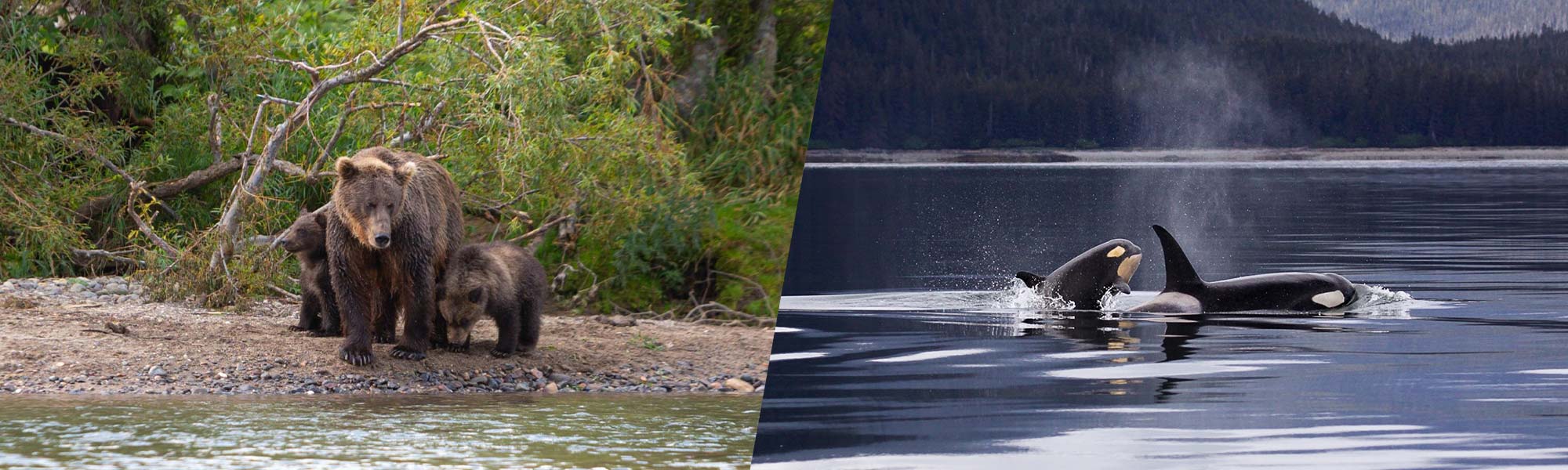 Explore pristine coastal waters and visit wilderness areas to see the orcas ("killer whales") and grizzly bears right off the coast of Vancouver Island. This self-guided tour will provide you with the most authentic wildlife and cultural experiences while staying in Alert Bay on Cormorant Island with a view of Johnstone Straight. The area is home to sheltered waters and islands with rich marine life, including the biggest population of orcas in western North America. Knight Inlet is at the end of the Strait, home to a thriving population of grizzly bears.