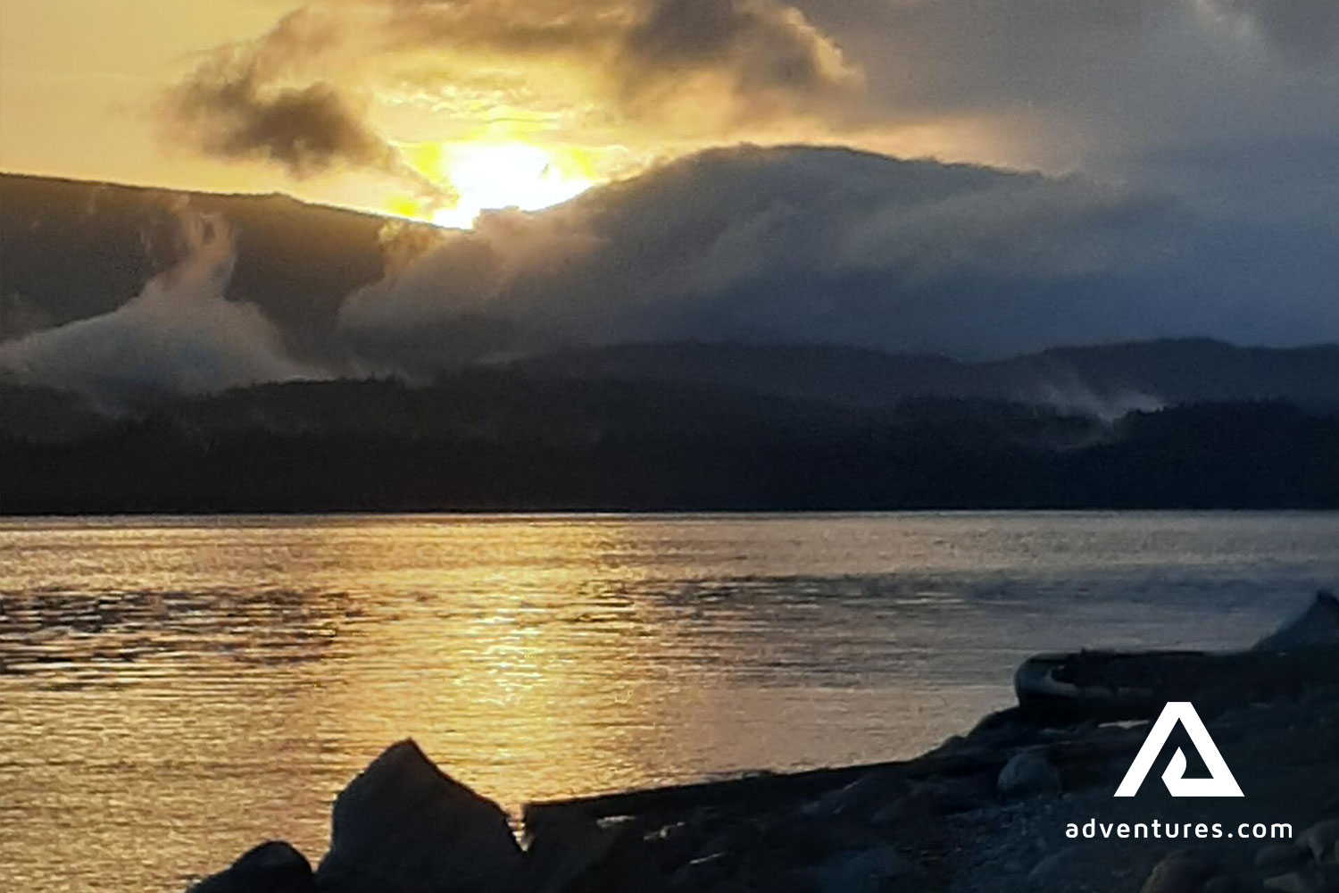 Your day will start at 6:45 a.m. when you depart from Alert Bay to go to Knight Inlet and watch grizzly bears in their natural environment. It will take you two hours on a boat to reach Johnstone Strait. Knight Inlet – a fjord surrounded by mountains and cliffs – is most known for its population of Grizzly bears. To be able to spot them, you’ll have to carefully motor and paddle around an estuary to find a spot from which you’ll be able to see grizzly bears. It’s known that the low tide causes more bears to go out, so you’ll see them looking for beach barnacles, crabs, and isopods. You’ll have to transfer to a flat-bottomed boat to reach the shallows. Also, don’t forget to take your binoculars and camera with you.