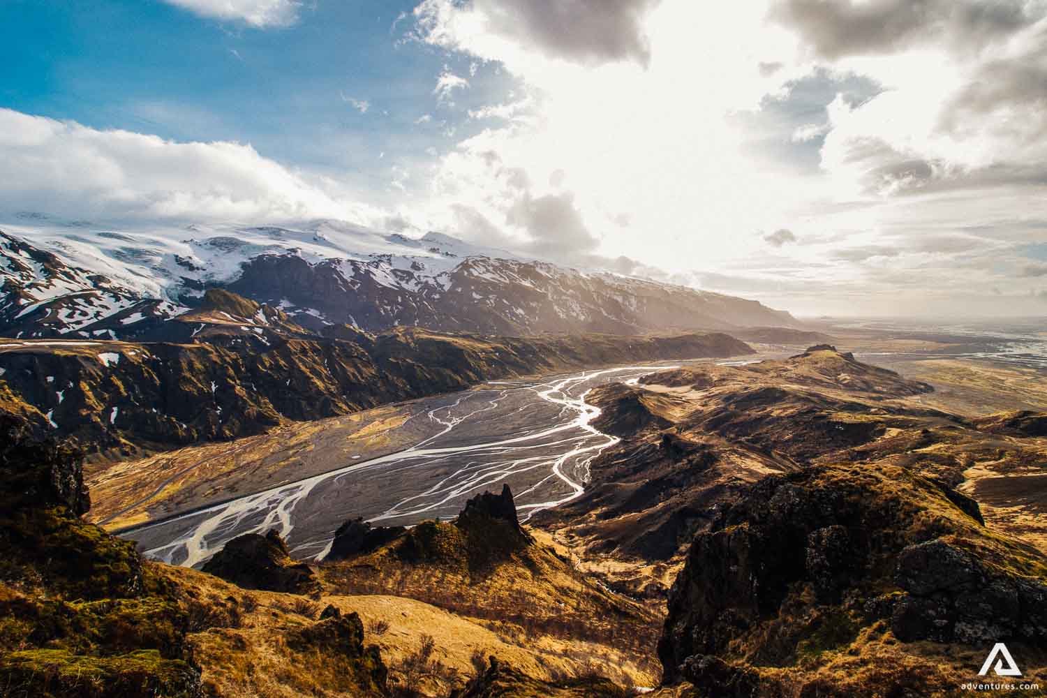 Der Weg führt die Wanderer dann zwischen drei Gletschern hindurch und steigt steil in das landschaftlich unglaublich schöne Thórsmörk-Tal hinab. Die Wanderung von den Kratern hinunter ins Tal ist der Höhepunkt der Tour. Bei guten Lichtverhältnissen ist dieser Anblick so bezaubernd, dass er Ihre Vorstellung von der größten Naturschönheit, die man sich nur vorstellen kann, leicht umschreiben kann.