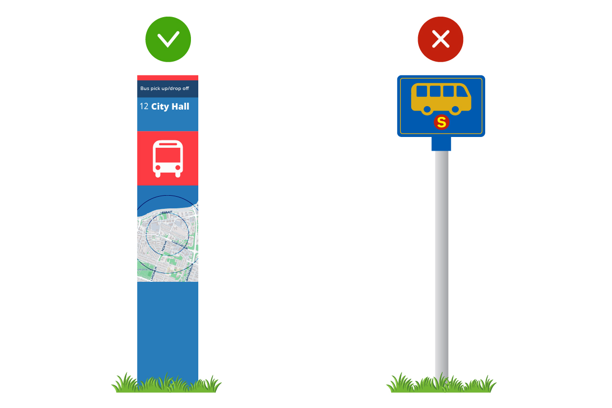 Die Abholstationen sind mit blauen Säulen markiert, die dadurch schwer zu übersehen sind.