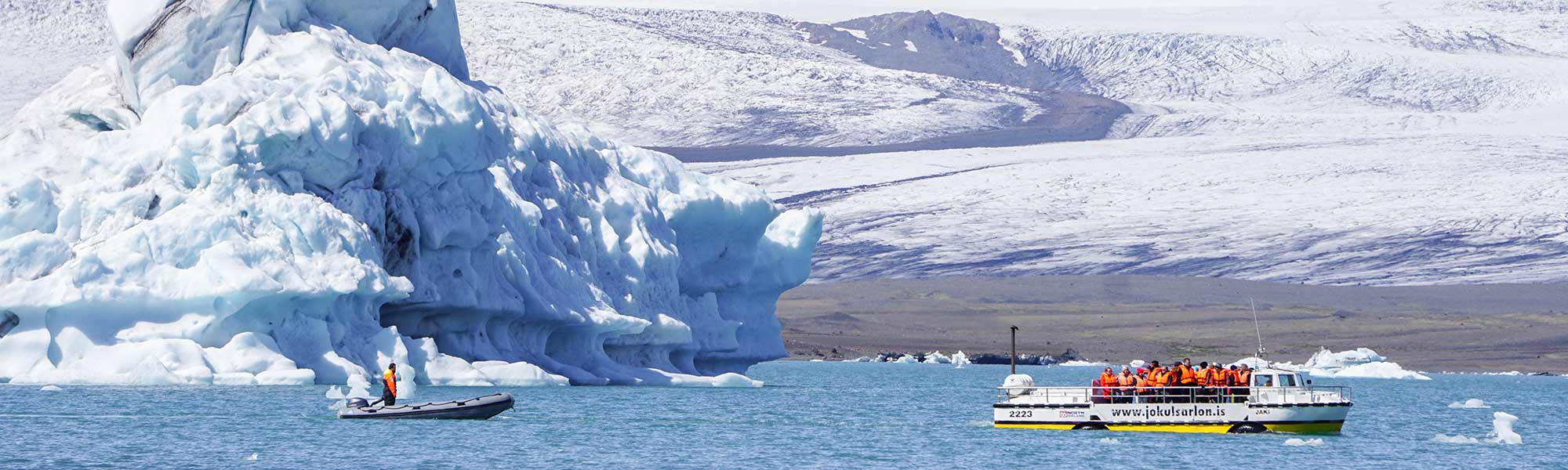 Eine Bootsfahrt auf der berühmten Jökulsárlón-Gletscherlagune in Südisland ist eine einmalige Erfahrung. Hier unternehmen Sie einen Ausflug mit einem merkwürdigen Amphibienboot, das in die Lagune hinein "fährt" und herumsegelt.