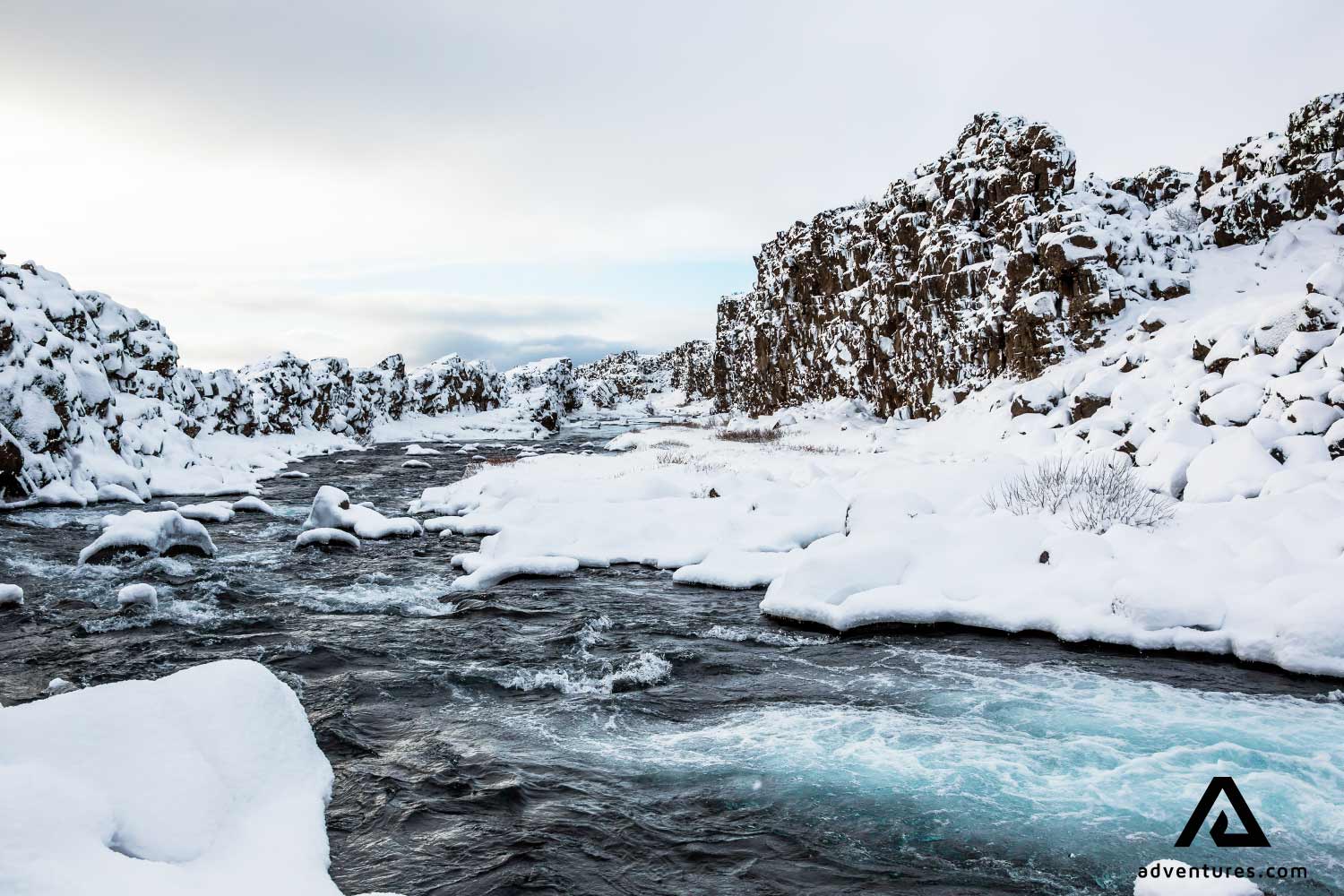 In Þingvellir sind die Ränder der eurasischen und die nordamerikanische Platte die durch Island verlaufen deutlich zu sehen. Die Platten entfernen sich voneinander und das Land dazwischen sinkt ab.