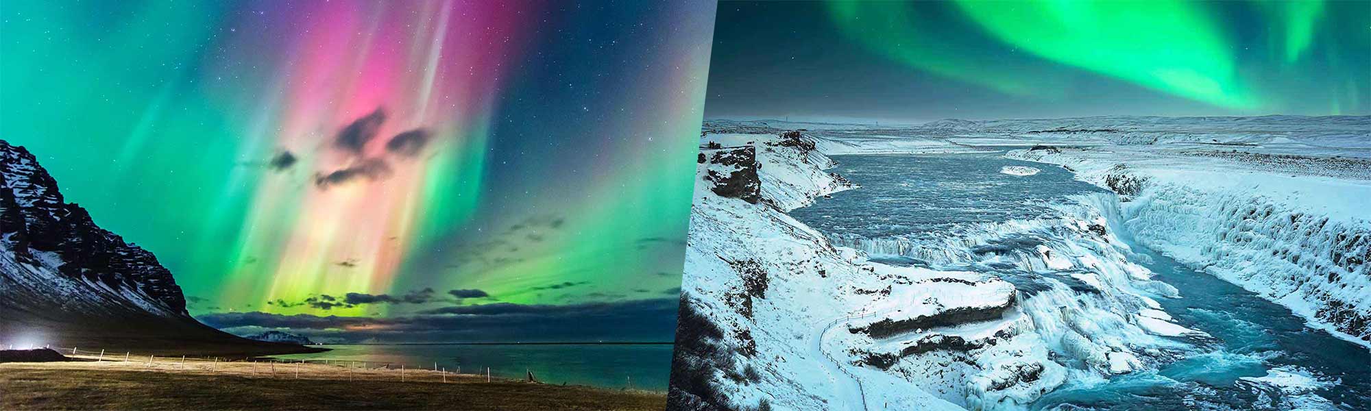 Die Nordlichter sind normalerweise Neon grün, obwohl weiße, rote und violette ebenfalls möglich sind. Die Nordlichter in der magischen Natur Islands erleben zu dürfen ist wie die Reise in ein Märchenbuch mit mystischen Wesen und Orten.