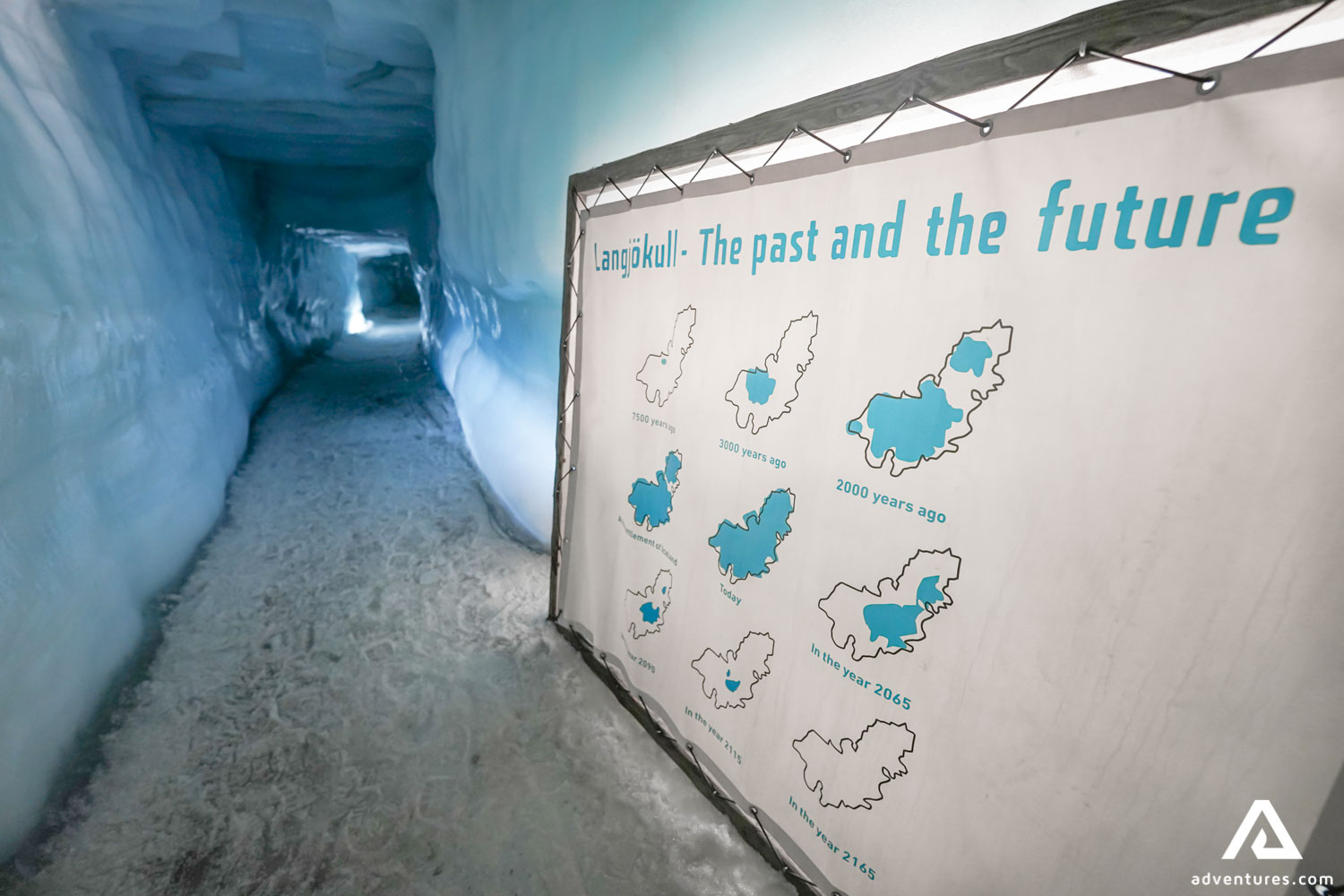 Treten Sie ein in die Eiszeit in einer von Menschen gemachten Eishöhle im Langjokull Gletscher.