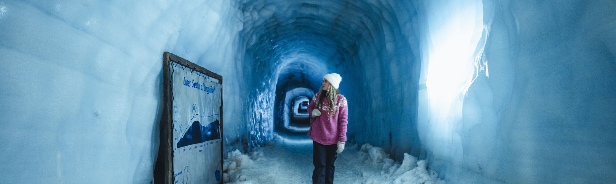 Bevor dieser Tunnel gebaut wurde, war niemand in der Lage, das wundervoll blaue Eis im Herzen des Gletschers zu sehen. Es ist nicht Jules Verne's Reise zum Mittelpunkt der Erde und auch nicht das tatsächliche "Herz" des Gletschers, aber es ist eine Reise in eine andere Welt. Eine Welt voll von wunderschönem, beeindruckendem blauen Eis.