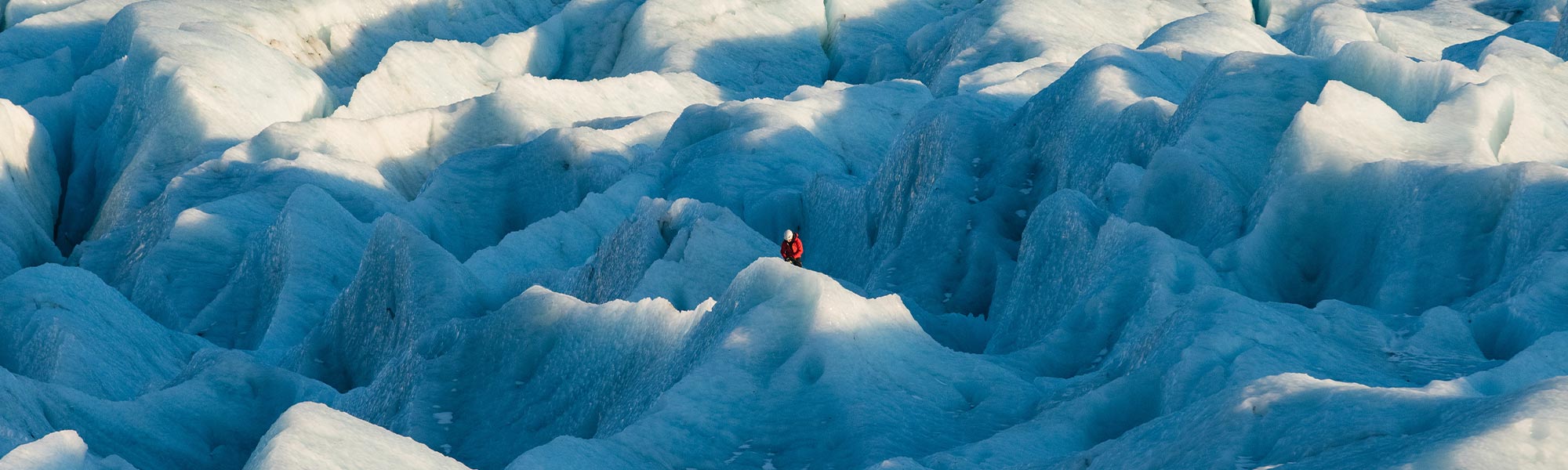 Ein Gletscher ist ein Fluss aus Eis, er bewegt sich. Dies liegt daran, dass die verschiedenen Schichten aus Eis sehr beweglich sind. An Orten, an denen der Gletscher schnell fließt, entstehen sogenannte Gletscherspalten. Daher ist es so gefährlich ohne Ausrüstung und ausgebildetem Führer auf dem Gletscher zu wandern - die Spalten könnten unter einigen Zentimetern Schnee versteckt liegen. Ihr Führer wird Ihnen bei Gelegenheit eine derartig versteckte Gletscherspalte zeigen.