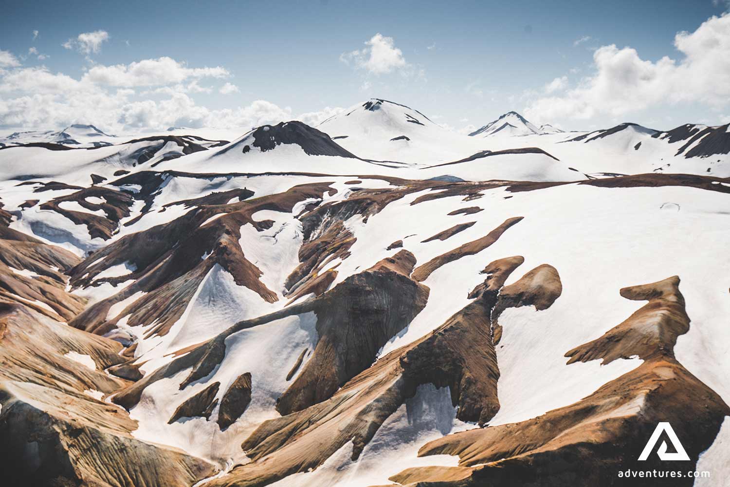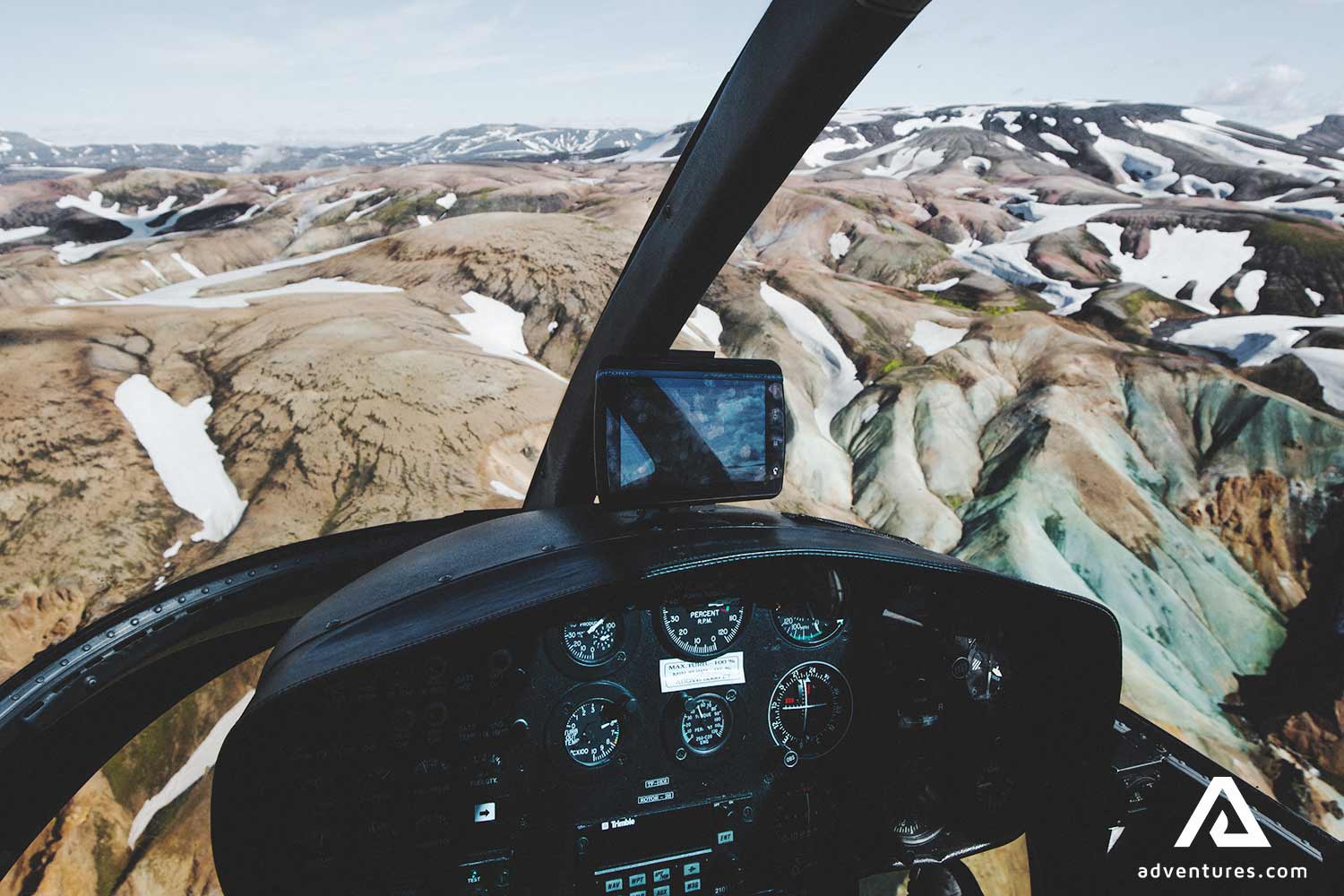 Von dort geht es weiter in die isolierte Region Landmannalaugar, wo farbenfrohe Berge eine atemberaubende Sicht aus der Luft bieten. Landmannalaugar liegt in der Wildnis von Islands Hochland, dem zu Hause der diversesten Landschaften der Welt. Wir sehen unglaubliche Orte wie Lavafelder, einmalig gefärbte Berge aus rhyolite, beeindruckende Vulkane, dampfende heiße Quellen und so viel mehr. Wir fliegen über Hrafntinnusker geothermal Region, bevor es weiter nach Thorsmork geht. Der Name Hrafntinna wird als Obsidianfels übersetzt, da die Region voll von Obsidian ist!