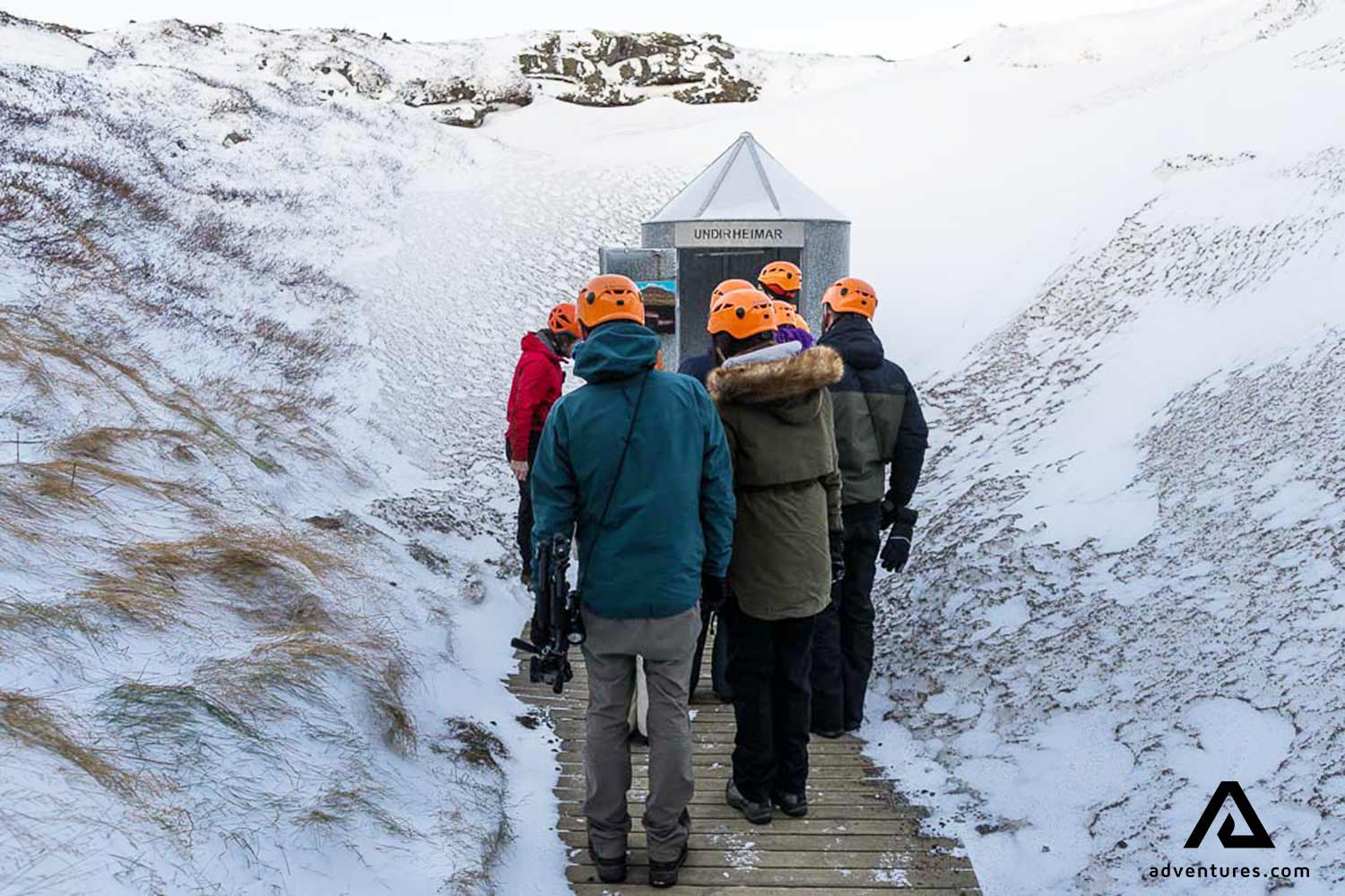 Die Vatnshellir-Höhle befindet sich im Herzen des spektakulären Snæfellsjökull-Nationalparks, 10 Minuten Fahrt von dem bäuerlichen Dorf Hellnar entfernt. Wir werden Sie an unserer Basis nahe der Höhle treffen. Dort wird Sie Ihr freundlicher Guide mit der notwendigen Ausrüstung ausstatten, darunter ein Helm und eine Stirnlampe (wir empfehlen sehr, dass Sie bequemes sowie festes Schuhwerk tragen, da es sehr schwierig sein kann, das Vulkangestein zu überqueren). Anschließend wird Ihr Guide mit Ihnen jegliche Sicherheitshinweise durchgehen, bevor wir die Wendeltreppe in die unterirdische Wunderwelt hinabsteigen.