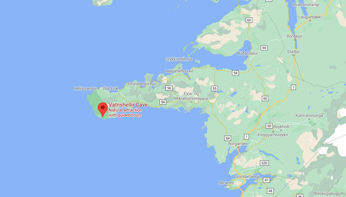 Vatnshellir befindet sich auf der Halbinsel Snæfellsnes, etwa 10 Minuten Fahrt von Arnarstapi und 2,5 Stunden von Reykjavik (circa 195 km) entfernt. Bitte checken Sie mindestens 10 Minuten bevor die Tour beginnt ein. Siehe unten Karte nach Vatnshellir.