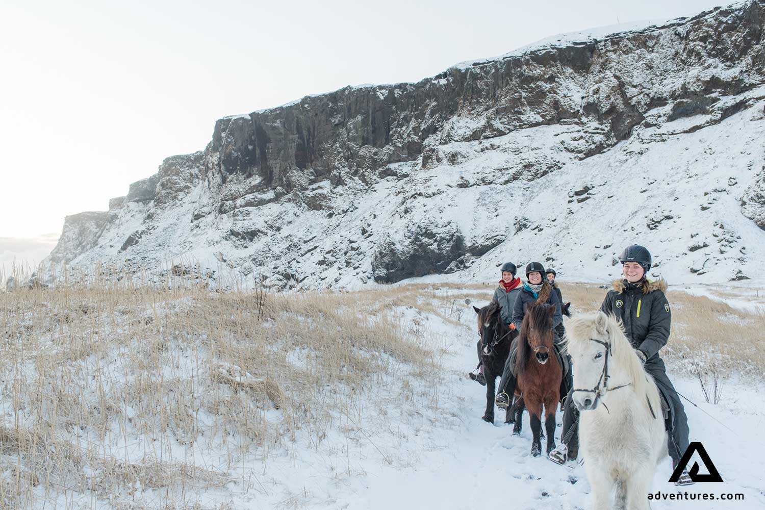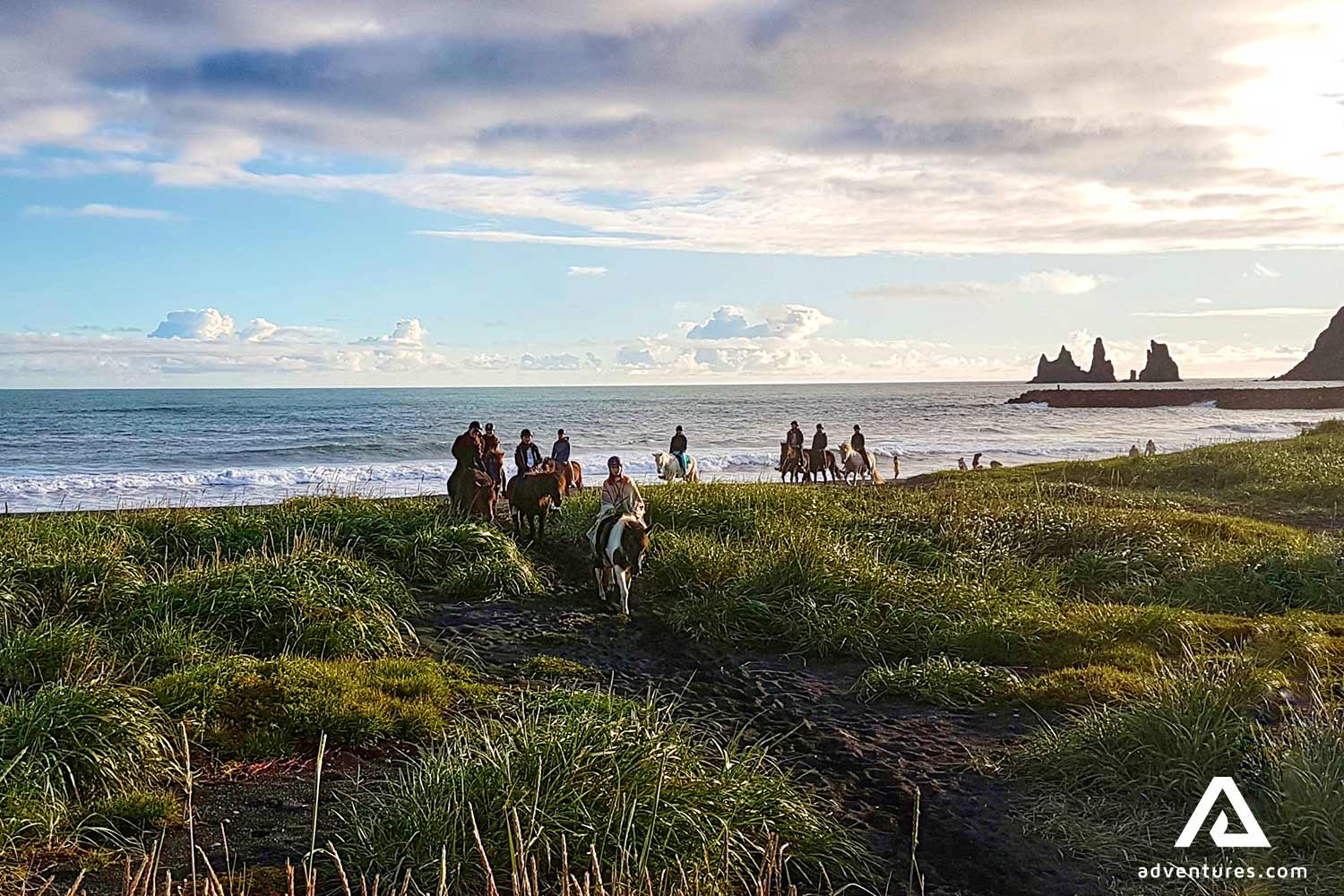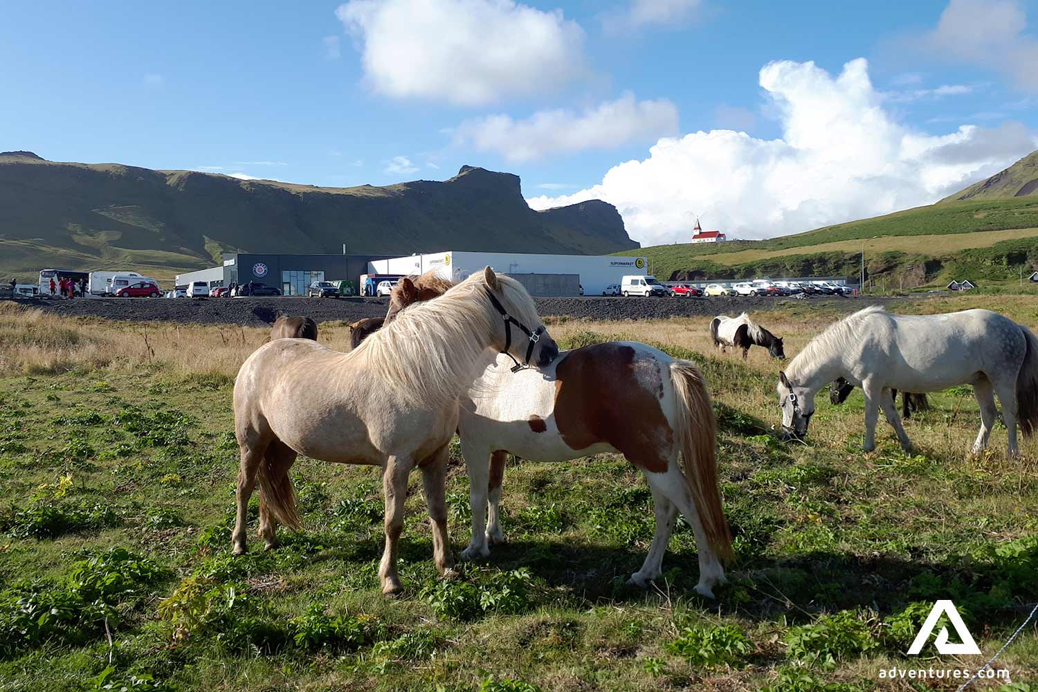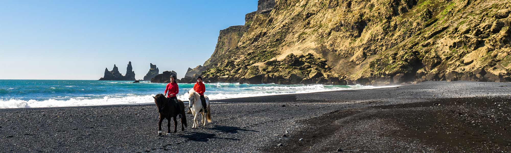 Die Touren beginnen in dem wunderschönen Dörfchen Vík an der Südküste Islands und führen uns den verzaubernden schwarzen Sandstrand Víkurfjara entlang. Die preisverdächtigen Strände bestehen aus pechschwarzem Sand, auf dem sich in einem herrlichen Kontrast die weiße Gischt der Wellen abzeichnen. Mit dem Rauschen der mächtigen Atlantikwellen als Hintergrundmusik wird dieser Strand zum perfekten Ort für einen Ausritt. Diese atemberaubende Landschaft in der Gesellschaft eines friedlichen Pferdes genießen zu können, ist ein Erlebnis, das Sie definitiv in Betracht ziehen sollten, wenn Sie die Südküste entlang reisen.