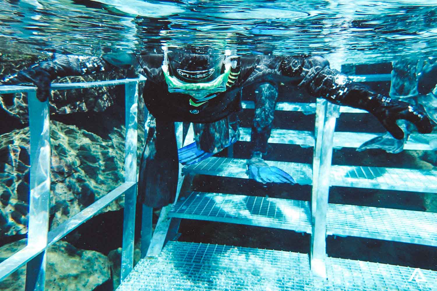 Die Silfra-Spalte ist ein Riss zwischen den beiden tektonischen Platten Eurasiens und Nordamerikas, was bedeutet, dass Sie zwischen den Kontinenten schwimmen werden!