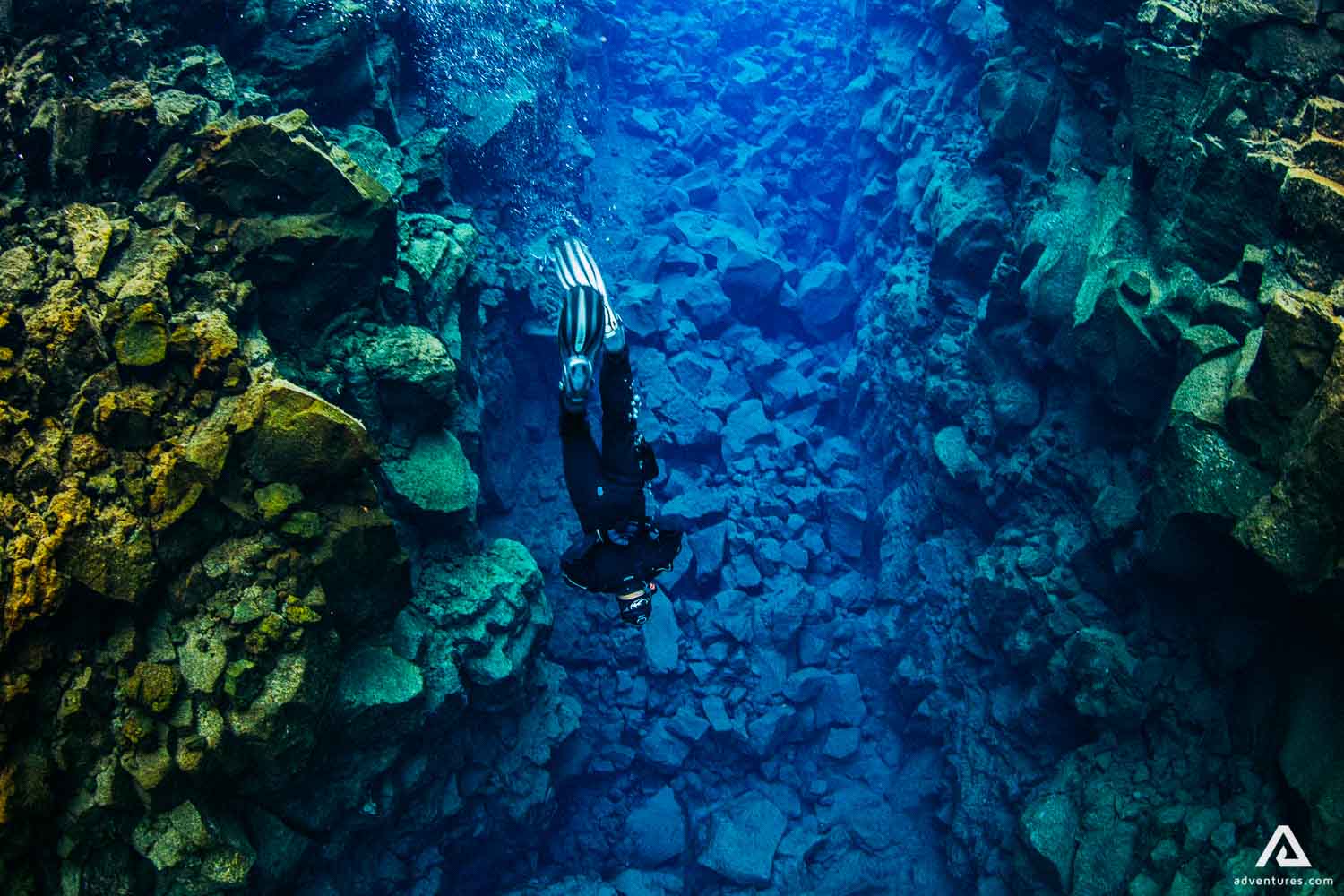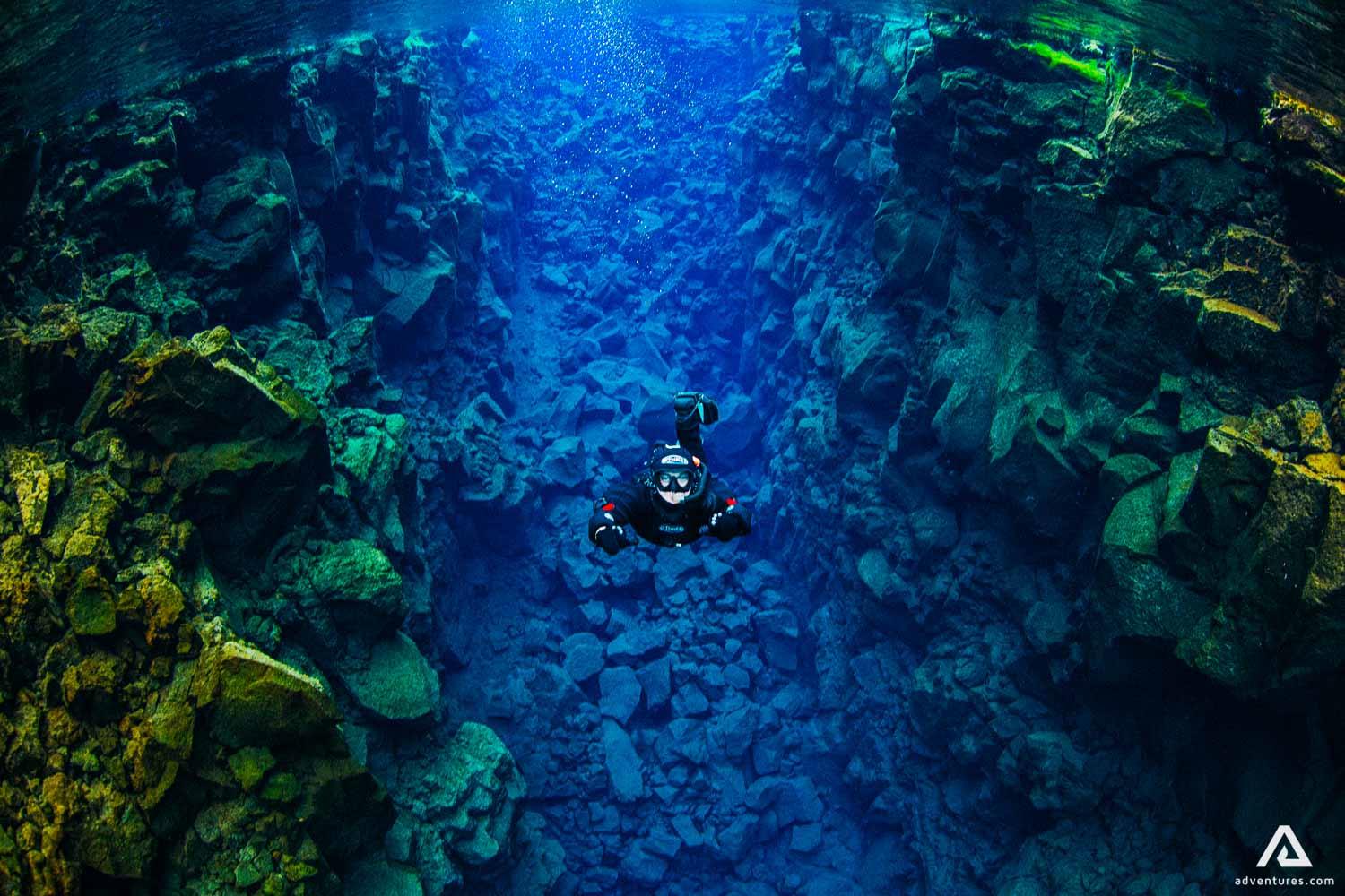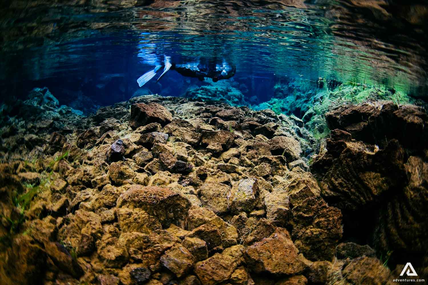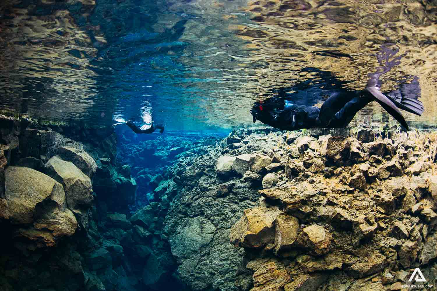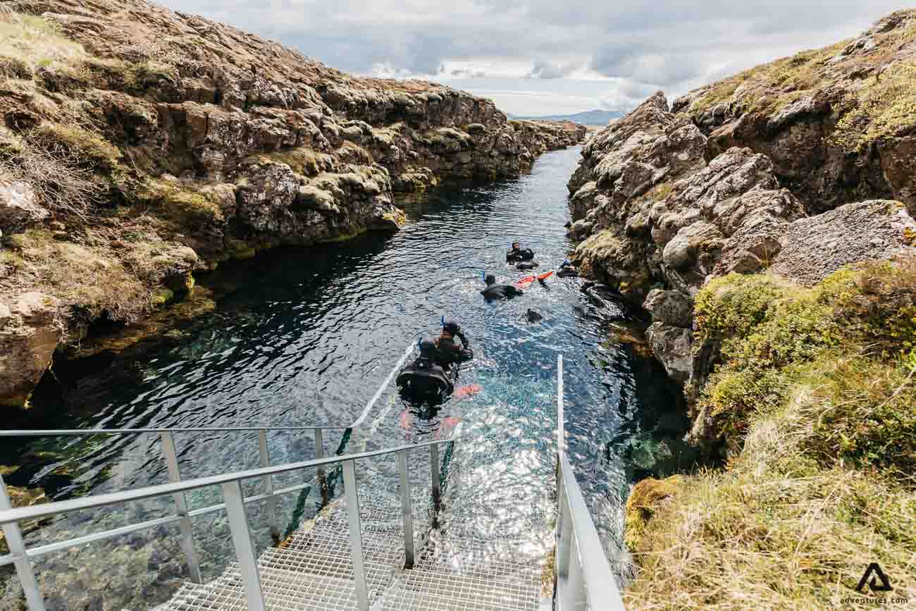 Silfra Fissure probably has the clearest water in the world. That‘s mainly because of the cold temperature and lava filtration. It‘s always cold, from 2°C – 4°C. The source is glacial water from Langjokull and on its travel, It has to break through lava, so it gets filtrated on its way.