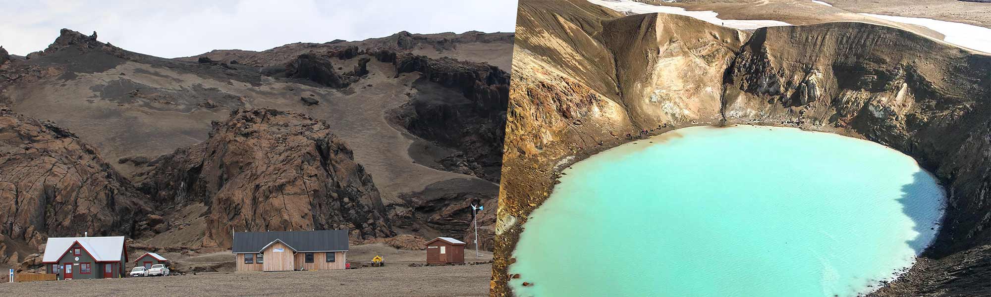 Von Akureyri aus geht es direkt aus ins Hochland und wir fahren eine weite sandige Ebene entlang. Eine kleine Straße, direkt auf den Berg. Mit. Herdubreid, Islands Nationalberg, zu. Dort machen wir in Herdubreidarlindir, einer kleinen Oase in dieser Wüstenlandschaft , einen kurzen Stop. Dann geht es weiter zur Drekagil Schlucht und dann zum Askja Krater, wo wir direkt neben den Kratern, die bei der Eruption von 1961 entstanden sind, parken. Von dort aus starten wir eine Wanderung zu Askja und Viti, einem Krater, der im Zuge einer explosiven Eruption im Jahr 1875 entstanden ist.
