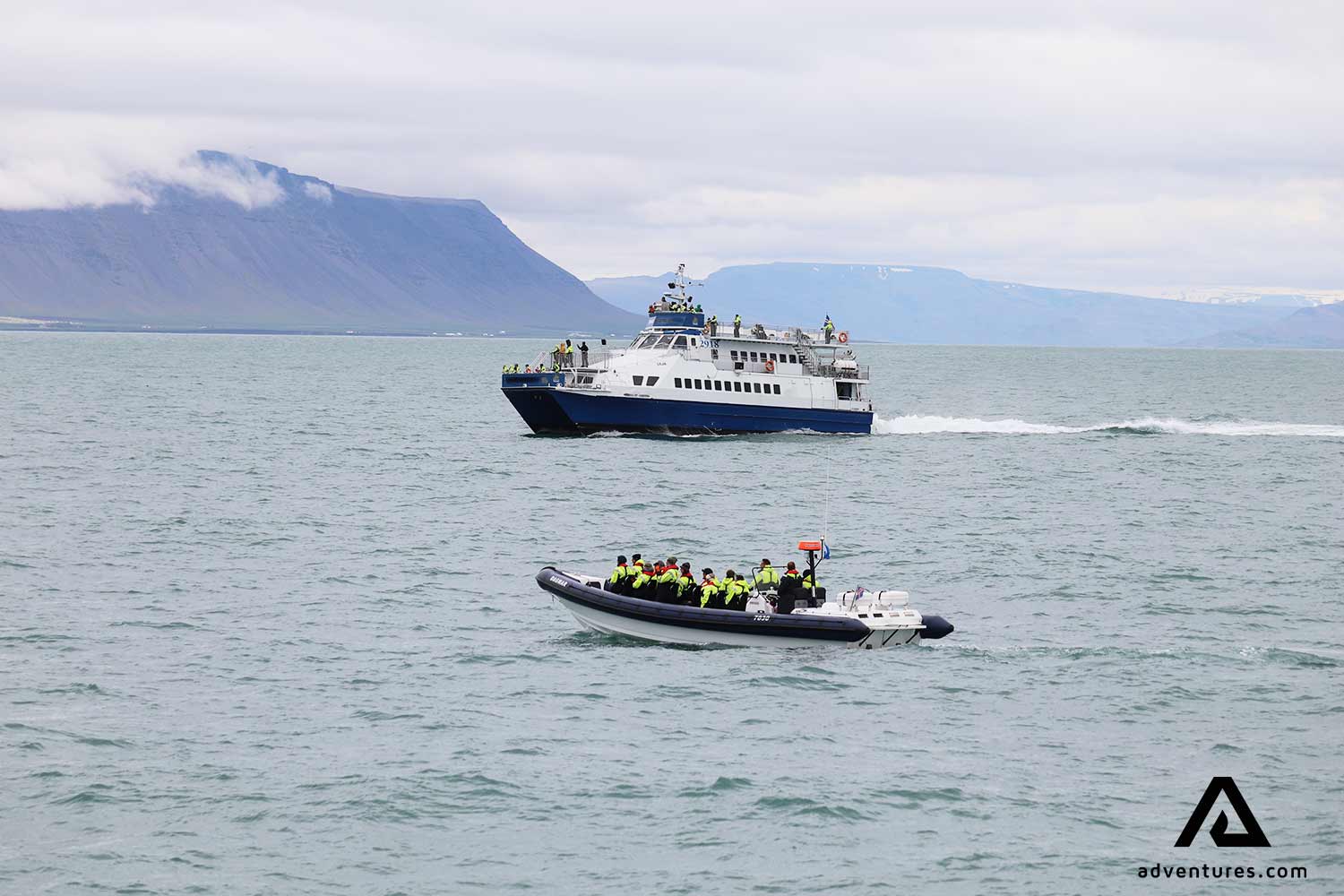 Diese aufregende Erfahrung beginnt am Hafen, wo wir unsere aufregenden RIB-Boote besteigen werden, die ideal zur Entdeckung des isländischen Meereslebens sind. Die Boote sind speziell angefertigt und verfügen über eine intelligente schockabsorbierende Federung, die sicherstellt, dass Sie sicher und komfortabel sind während wir über die Wellen hüpfen. RIB-Boote eignen sich ebenfalls perfekt für Beobachtungen der Tierwelt, da sie sehr flach gebaut sind, wodurch wir nahe an die Tiere herankommen, aber dennoch einen sicheren Abstand halten, um die Tiere nicht zu stören.