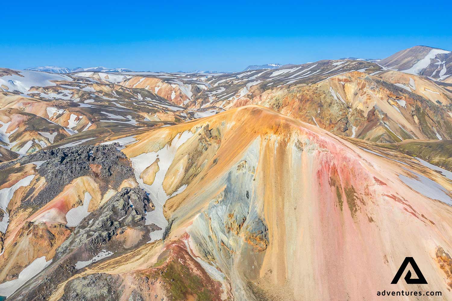 Sobald Sie an Ihrem letzten Tag in Landmannalaugar aufwachen, erwartet Sie ein warmes isländisches Frühstück und dann geht es zum Blahnukur ('blauer Gipfel'), einem alten Vulkan, der für seine dunkelblauen Hänge und seine kolossale Erscheinung bekann...)