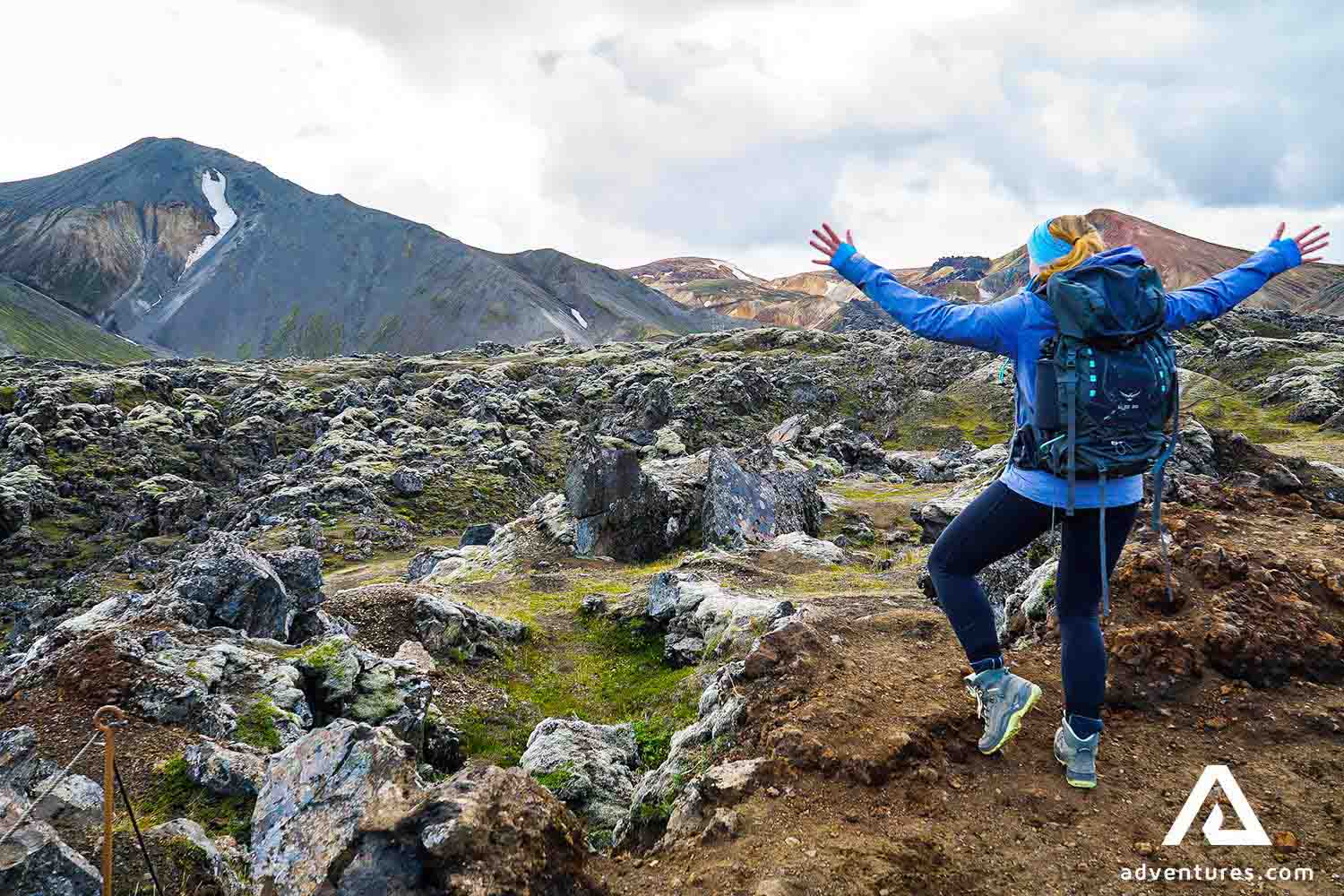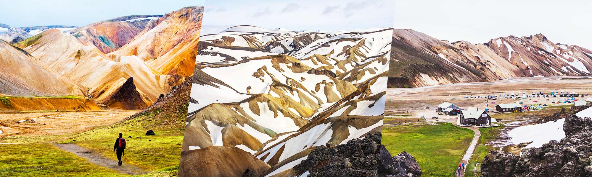 All das befindet sich im geothermalen Paradies, gespickt mit blubbernden heißen Quellen, regenbogenfarbenen Bergen und unglaublichen Rhyolithbergen. Nach dieser langen Tageswanderung werden wir uns in der natürlichen heißen Quelle an der Landmannalaugar-Hütte entspannen.