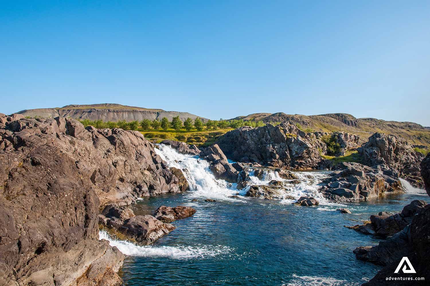 Ihr nächster Halt ist Grundarfjörður, eine Stadt, in der Sie eine kurze Pause einlegen, vielleicht ein paar Snacks einnehmen oder die Toilette besuchen können. Die Reise geht weiter mit einem Halt an einer Tankstelle für eine weitere kurze Pause, bevor es zum faszinierenden Hraunfossar-Wasserfall geht. Bei diesem einzigartigen Wasserfall fließt das Wasser unter einem Lavafeld hervor und bietet ein unvergleichliches Spektakel. Dies wird auch Ihr Mittagsplatz sein, so dass Sie ausreichend Zeit haben, in die Schönheit der Umgebung einzutauchen.