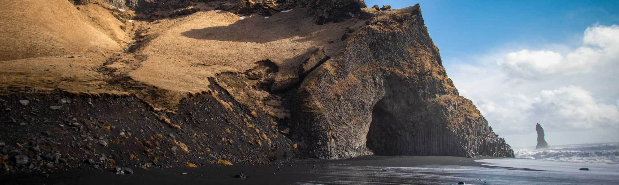 Wenn wir weiter die Küste entlangfahren, erreichen wir Reynisfjara, Islands berühmten schwarzen Sandstrand. Sie werden hoch aufragende Basaltsäulen, Höhlen und die mystischen Basaltpfeiler Reynisdrangar sehen, die aus den Wellen ragen. Reynisfjara ist ein Traum für jeden Fotografen und ein absolutes Muss an der Südküste.