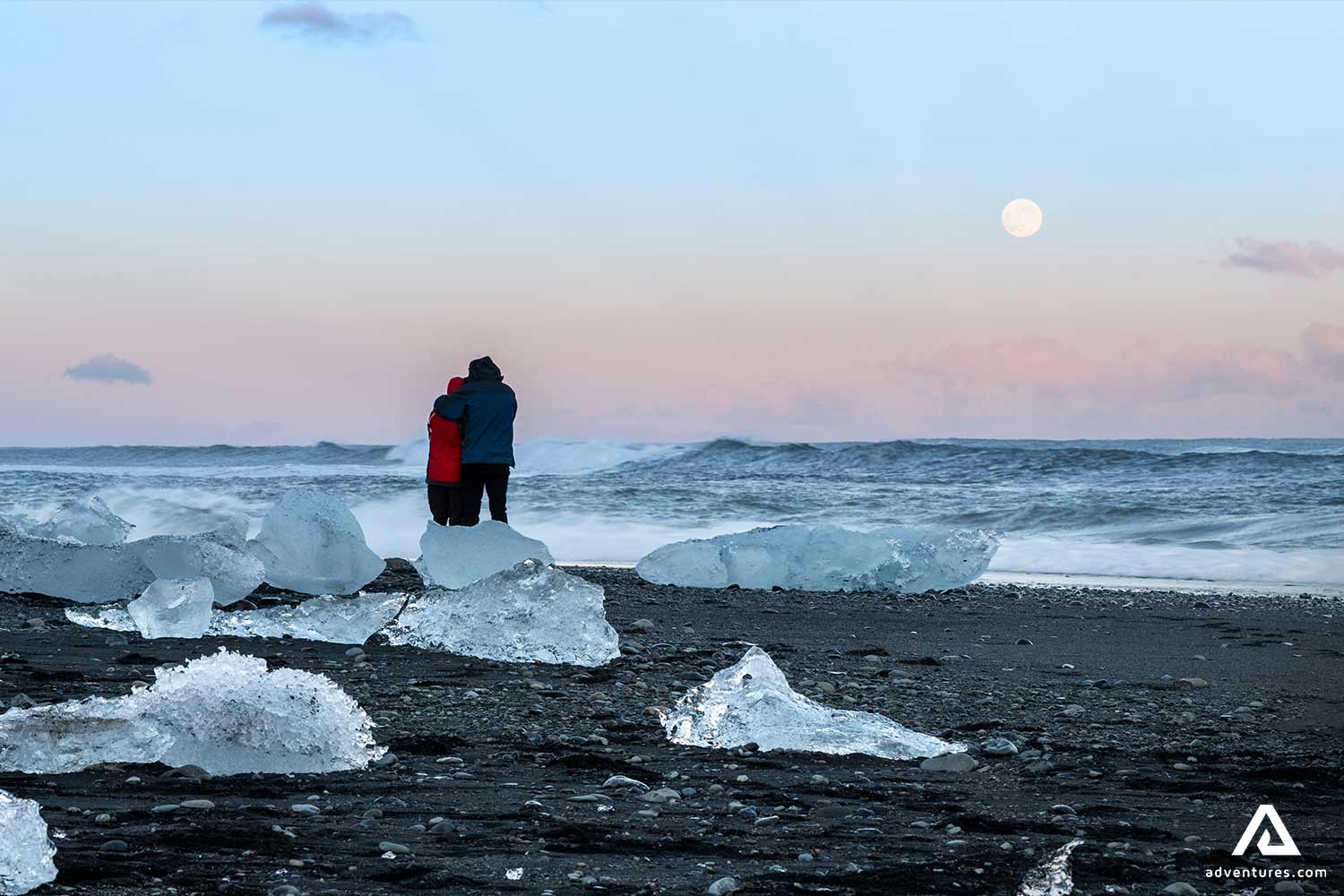 Unser erstes Ziel ist die Gletscherlagune Jökulsárlón, ein Ort, an dem riesige Eisberge friedlich über die Lagune in Richtung Meer treiben. Diese Gletscherlagune wurde durch den schmelzenden Gletscher Breiðamerkurjökull geformt. An der Stelle, an der der schmelzende Gletscher den Meeresspiegel erreicht, brechen riesige Stücke von seiner Zunge ab. In der Nähe liegt der Diamond Beach, wo die Eisberge an Land gespült werden und wie Juwelen auf dem schwarzen Sand glitzern.
