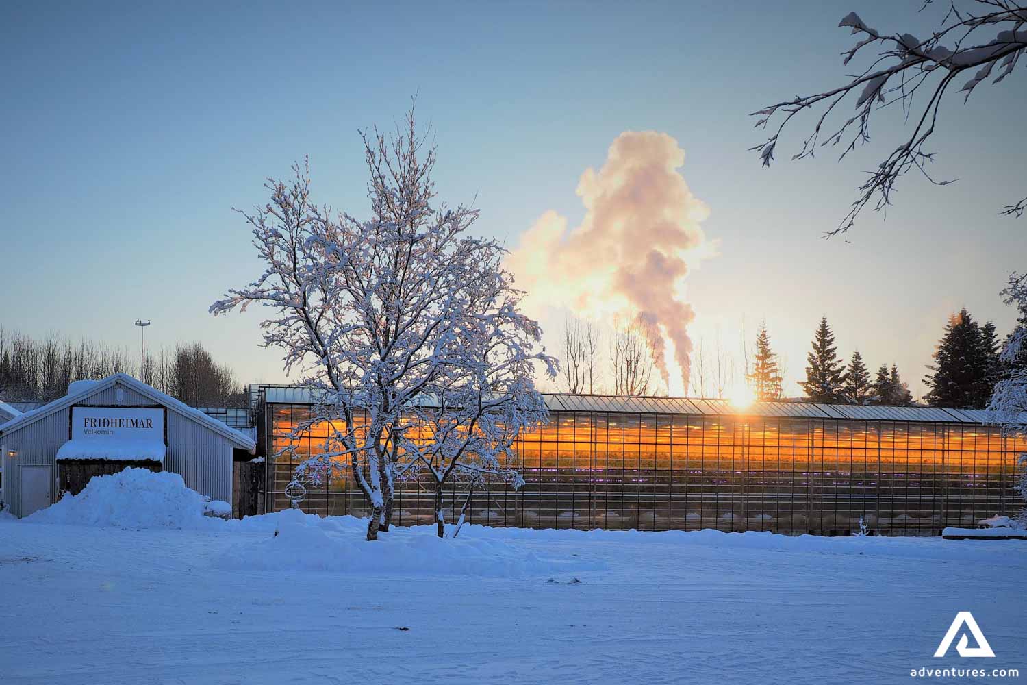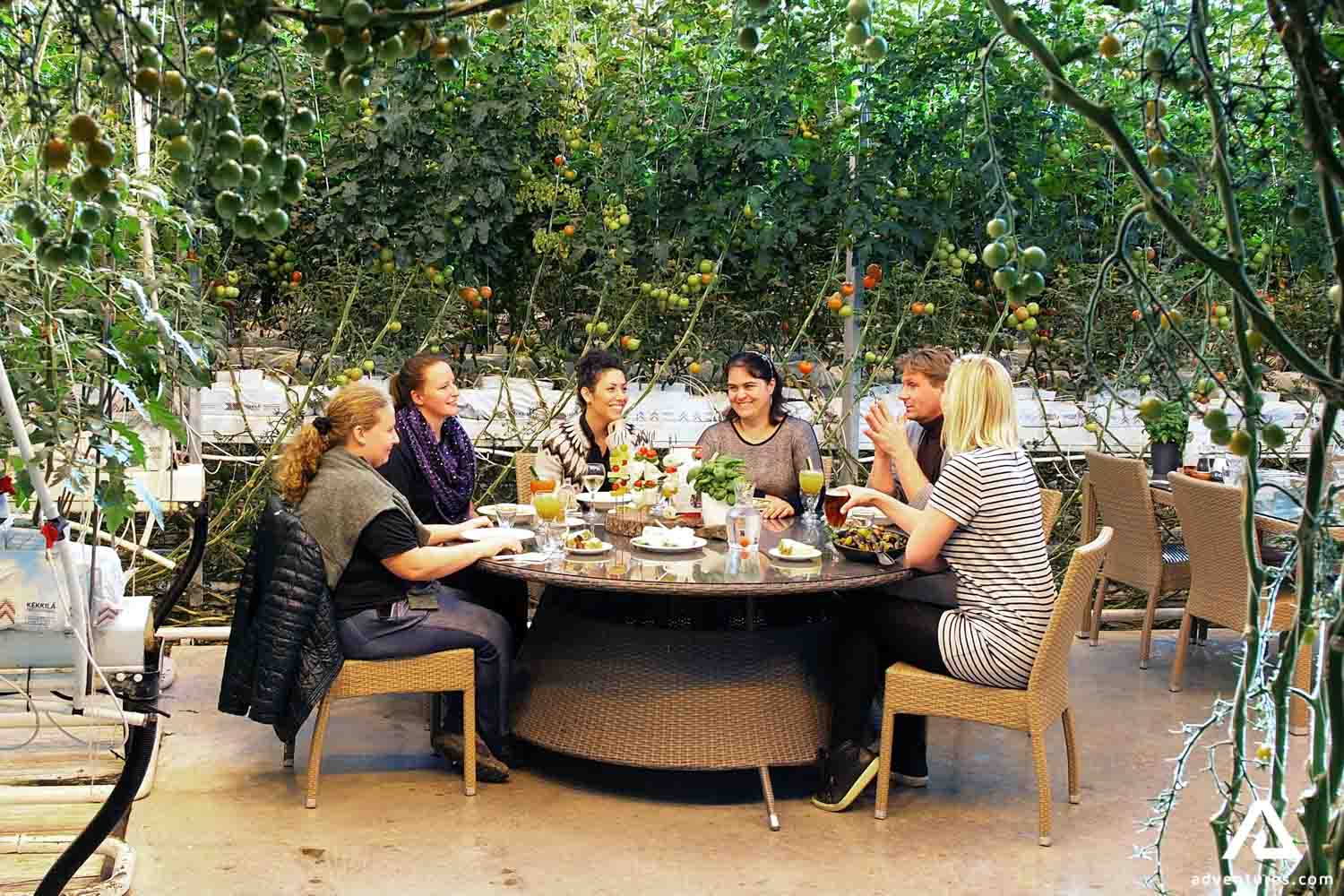 Friðheimar liegt am Golden Circle, nur 30 Minuten vom berühmten Wasserfall Gulfoss entfernt und ist eine familiengeführte Tomatenfarm, die Mittagessen direkt im Gewächshaus anbietet. Die Tomaten wachsen hier das ganze Jahr über trotz des manchmal rauen isländischen Wetters – reichlich Vorräte an geothermischem Wasser heizen Gewächshäuser auf. Durch den Einsatz moderner Technologie und nachhaltiger Energie bleibt das Gewächshaus das ganze Jahr über auf der perfekten Temperatur, Feuchtigkeit, Kohlendioxid und Beleuchtung.