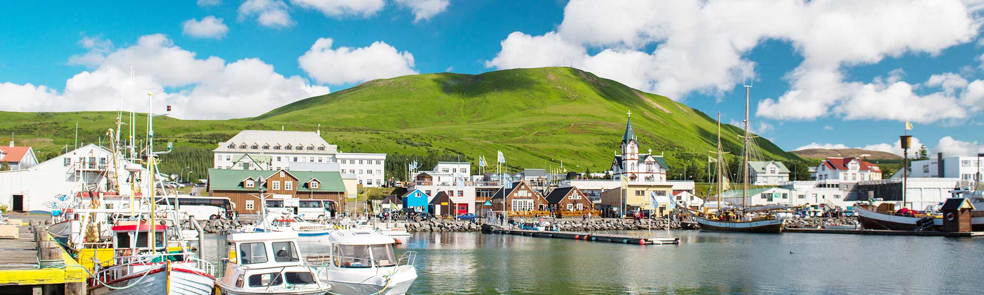 Húsavík est l'une des nombreuses charmantes villes d'Islande que l'on trouve sur la côte de la Baie de Skjalfandi. La ville est reconnue comme un endroit idéal pour l'observation des baleines et est un centre culturel avec de nombreux musées et de bons restaurants. L'arrêt parfait pour explorer le Nord de l'Islande, surtout en raison de sa proximité avec d'autres attractions étonnantes.