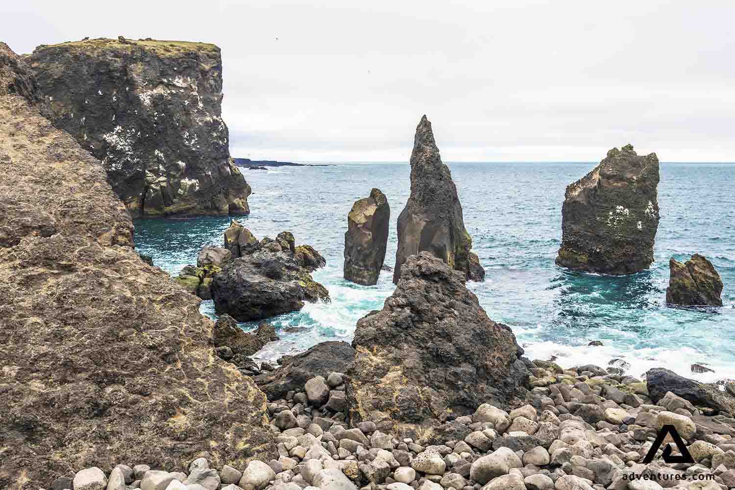 À quelques centaines de mètres du phare se trouve une plage rocheuse spectaculaire au pied d’une montagne pittoresque. Il y a des falaises palpitantes et d'énormes rochers partout. Les fissures s'étendent dans le sol comme si cela pouvait s'ouvrir sous nos pieds à tout moment. Avec l'impressionnante île Eldey au loin, cette magnifique plage est l'endroit idéal pour regarder le coucher du soleil.