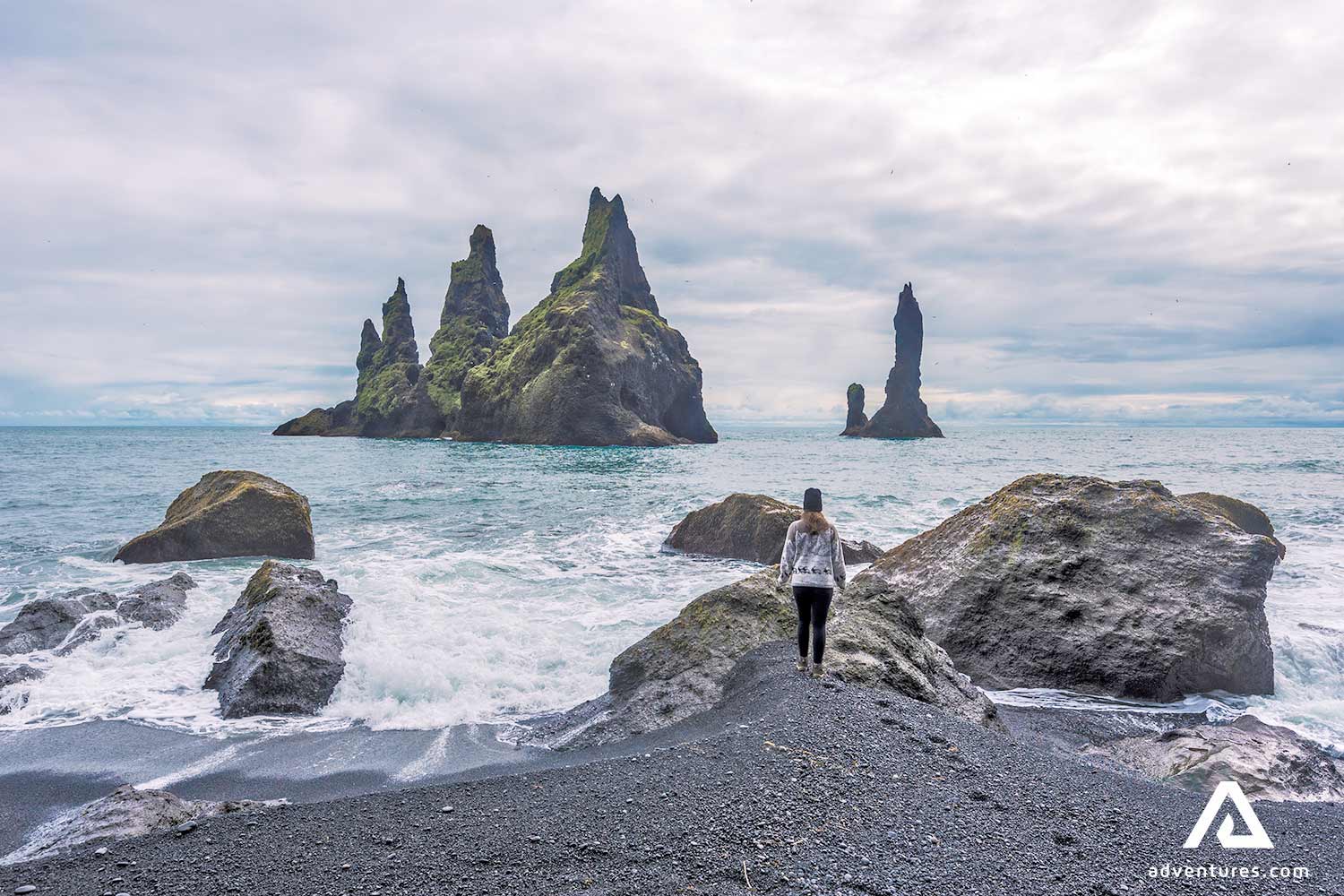 Les piliers de Reynir se dressent sur l'océan à proximité de la côte et donnent à l'ensemble un aspect très distinctif. Selon le folklore Islandais, ces formations étranges étaient autrefois des trolls de mer qui essayaient de ramener un navire sur la côte. Ils ne se rendaient apparemment pas compte que le soleil se levait et qu'ils se transformeraient instantanément en pierres une fois que le soleil les aurait touchés.