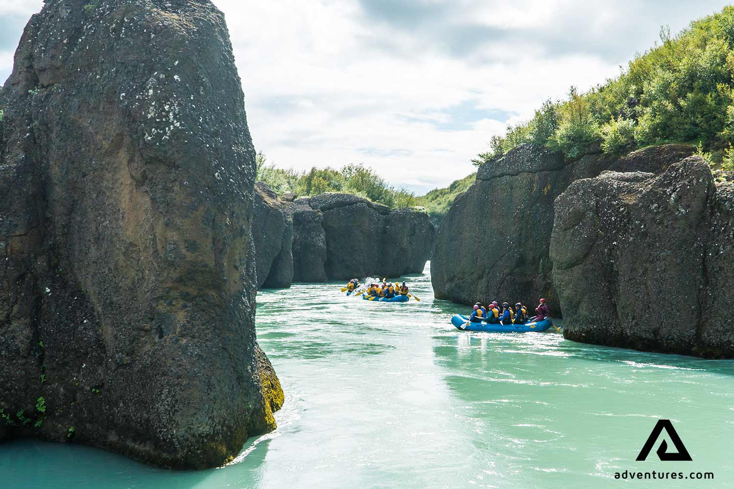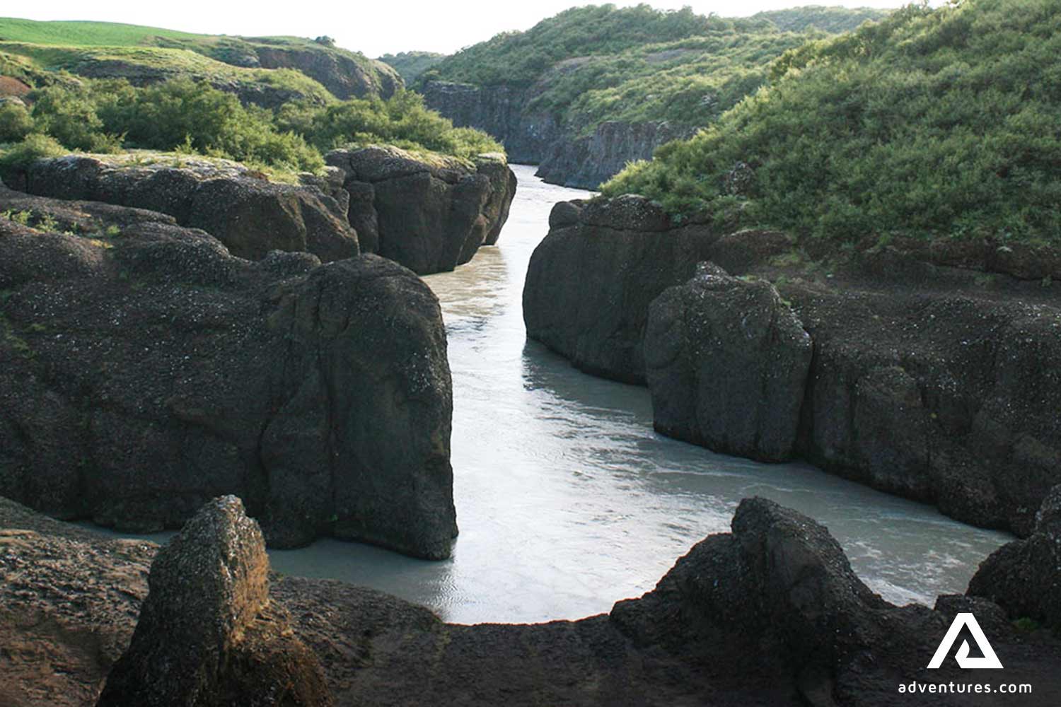 Les parties basses de la rivière sont absolument époustouflantes. L'eau a une curieuse couleur bleu laiteux. A une dizaine de kilomètres en contrebas de la cascade, la rivière est assez calme et sûre pour faire du rafting et des tours de rivière en jet. Les bateaux traversent des paysages incomparables alors que d'impressionnantes colonnes de basalte et des formations rocheuses encadrent le canyon. Une promenade dans le canyon est une excellente façon d'explorer ce joyau caché du Cercle d'Or.