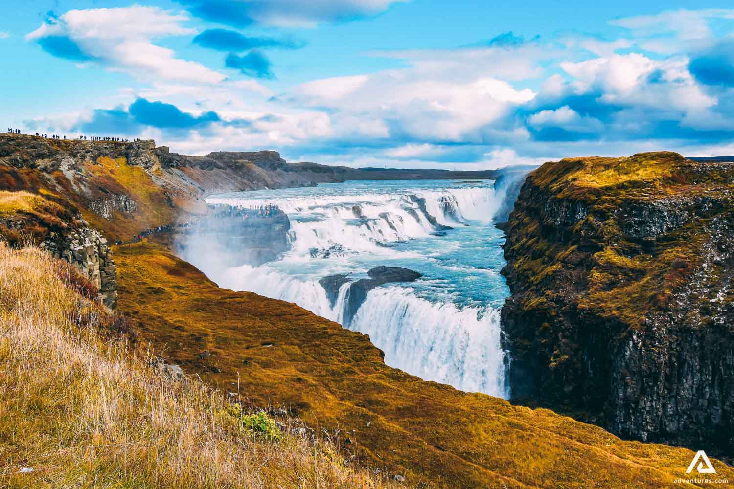 La cascade de Gullfoss (la cascade d'or) sera notre prochain arrêt. Elle provient de la rivière Hvítá - en provenance du glacier Langjökull.