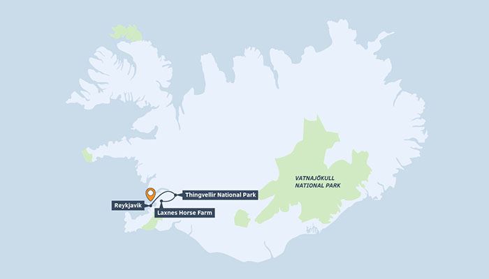 Après Silfra, nous vous conduirons à la magnifique ferme équestre de Laxnes dans la pittoresque et historique vallée de Mosfellsdalur. Cette zone, avec ses beaux champs verts, est l‘endroit idéal pour les chevaux islandais. Ces derniers sont petits mais forts, et ont acquis une réputation internationale pour leur 4ème allure, connue sous le nom de tölt. Cette allure est étonnamment douce et agréable à vivre. Les chevaux islandais sont également réputés pour leur personnalité unique et leur calme. Vous pouvez être sûrs que votre cheval sera facile à monter. Votre guide équestre expérimenté vous expliquera tout ce que vous devez savoir et vous guidera dans la très belle campagne autour de la ferme équestre de Laxnes.