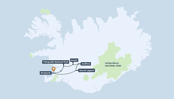 Lors de cette superbe journée pleine d’aventures, vous serez amenés à explorer de nombreux sites du célèbre circuit du Cercle d’Or et à vous baigner dans une magnifique piscine naturelle géothermique appelée « Le Lagon Secret ».