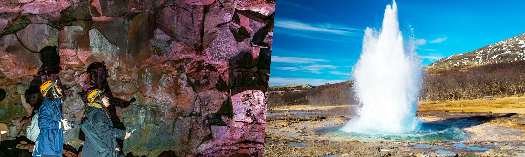 Cette excursion combine deux activités : la première est la visite du tunnel de lave de la grotte de Leidarendi le matin et la deuxième est le circuit du Cercle d’Or l’après-midi. Nous vous déposerons dans une boulangerie à Reykjavik entre ces deux activités (il y a également un supermarché à proximité).